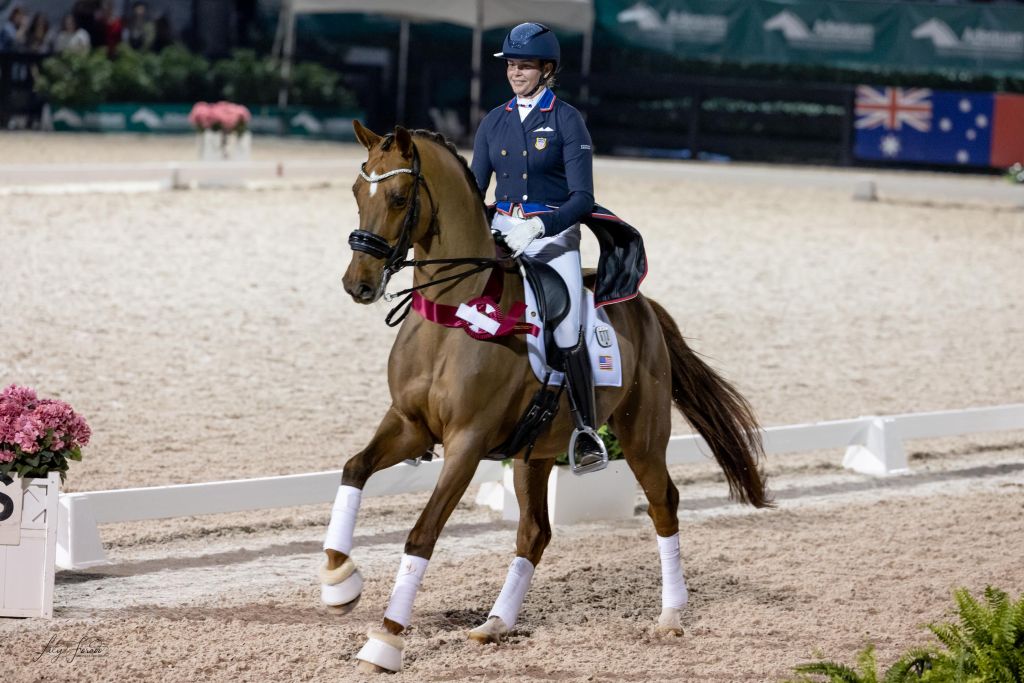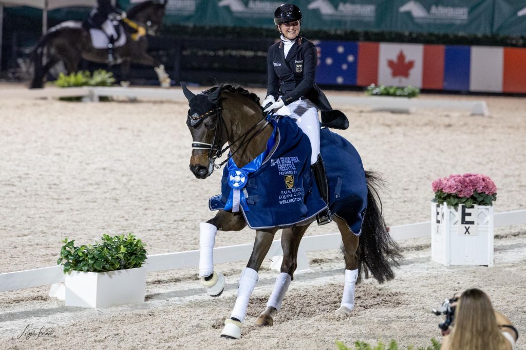 La campeona de Europa de U25 deleitó al público con una coreografía de gran dificultad. Usando la misma música que en el pasado Campeonato de Europa 2022, al son de «You Make Me Feel» de Sylvester en la parte del trote brilló. Como bien destacó en la rueda de prensa posterior, el caballo «estaba onfire» y en el passage y piaffe estuvo brillante. Felicitas continúa con su estela dorada. En una semana inimaginable para la amazona, hoy Viernes 12 de Enero, Felicitas ha vuelto a sellar un triunfo dorado en los cuadrilongos americanos con un notable 78.490%.