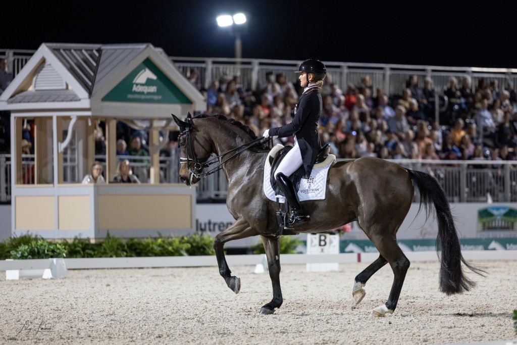 La atmósfera del viernes por la noche en el Adequan Global Dressage Festival de Wellington es simplemente especial. Los focos iluminan la pista y cada tranco de los caballos: es mágico.