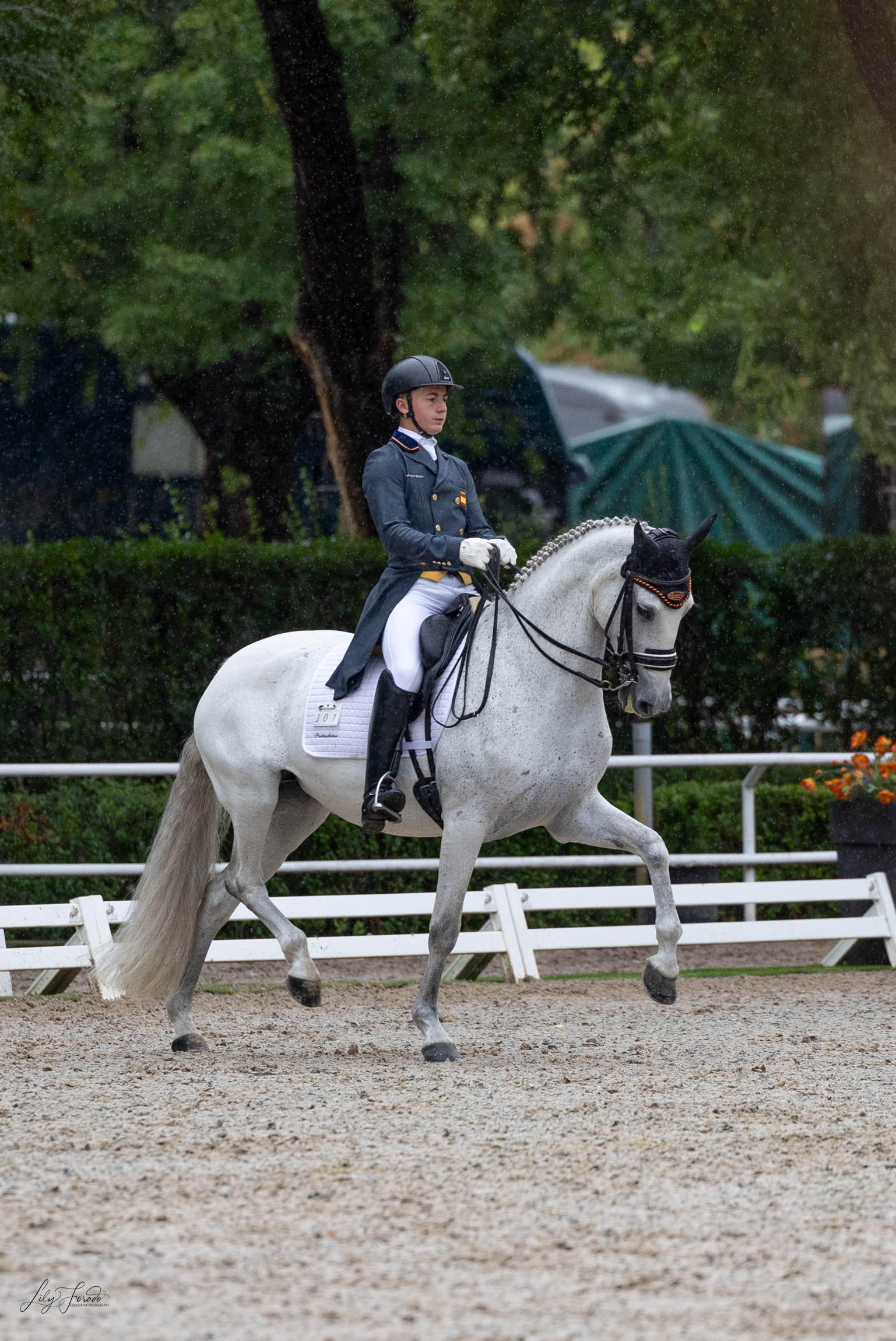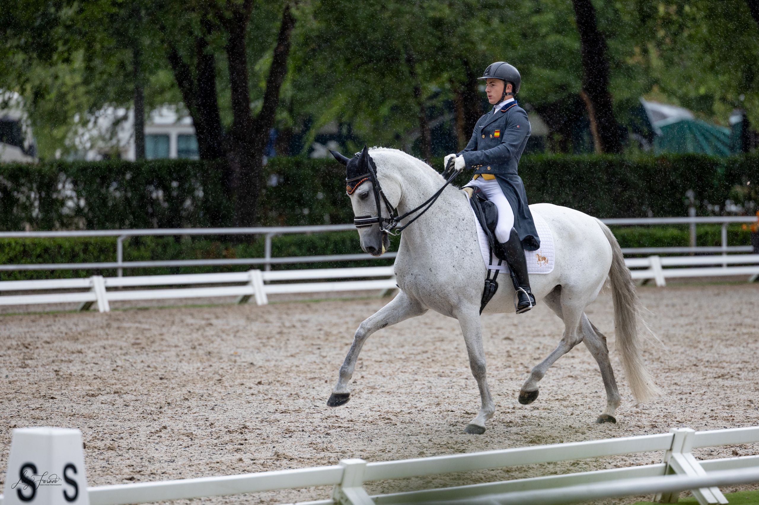 La prueba musical fue determinante para los dos metales restantes; Sergio Morón vs Adrián Roldán. Sergio Morón no ha sido para menos y siguiendo la tónica de evolución desde Juveniles, el jinete de Arnedo suma desde hoy otra medalla para su amplio repertorio. En su primera temporada de U25, Sergio concluye con la medalla de plata . Debutando una pieza musical completamente nueva, bajo los acordes rockeros tan famosos de “Smoke on the Water” de Deep Purple en passage y piaffe, y “Another Brick on the Wall” de Pink Floyd, Morón enlazó galope largo seguida de doble pirueta; para salir y continuar con cambios cada dos trancos. Con un notable 74.980% copó la segunda posición y tras el computo de puntos, su acumulado final ha sido de 218.903.