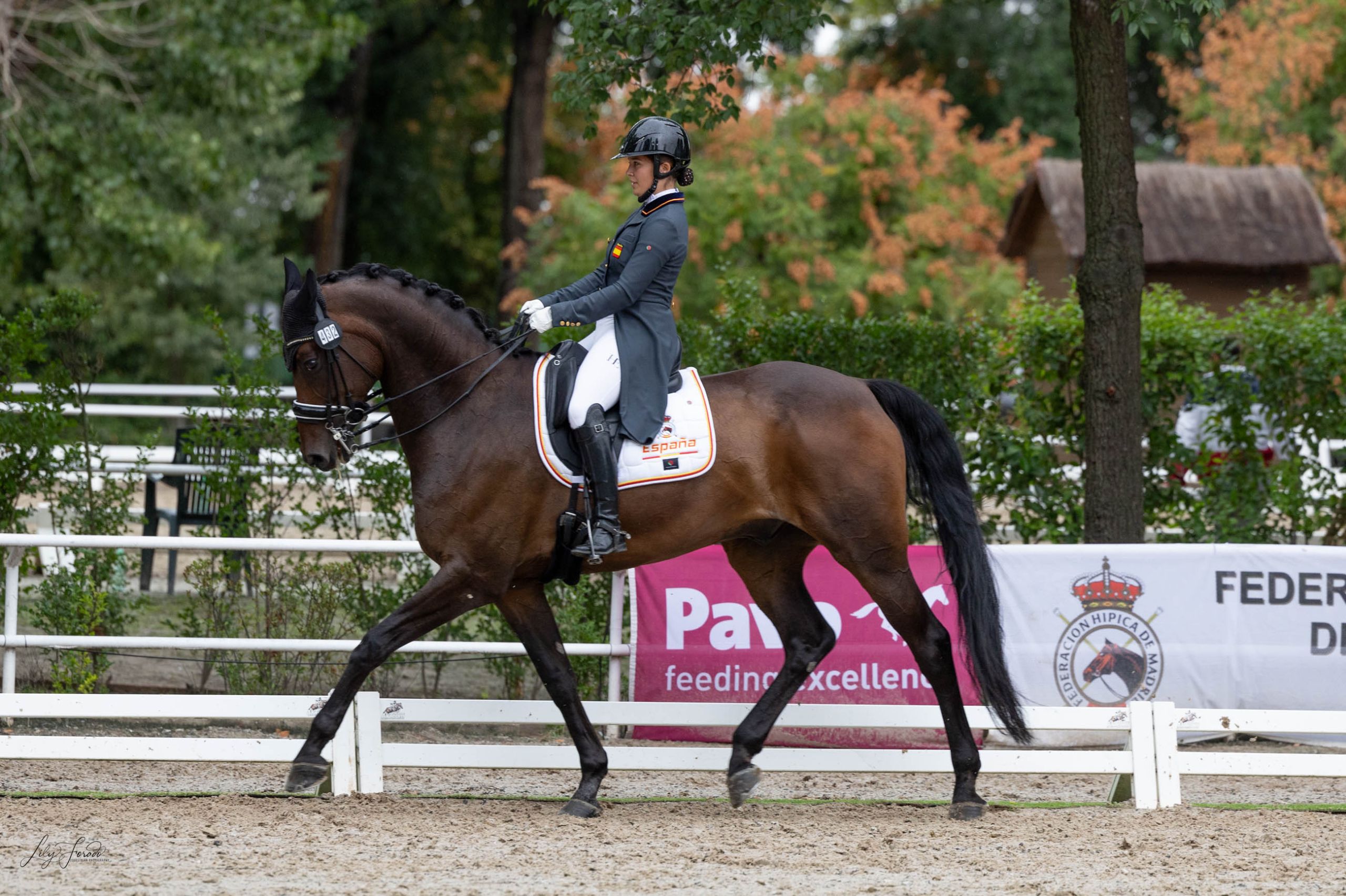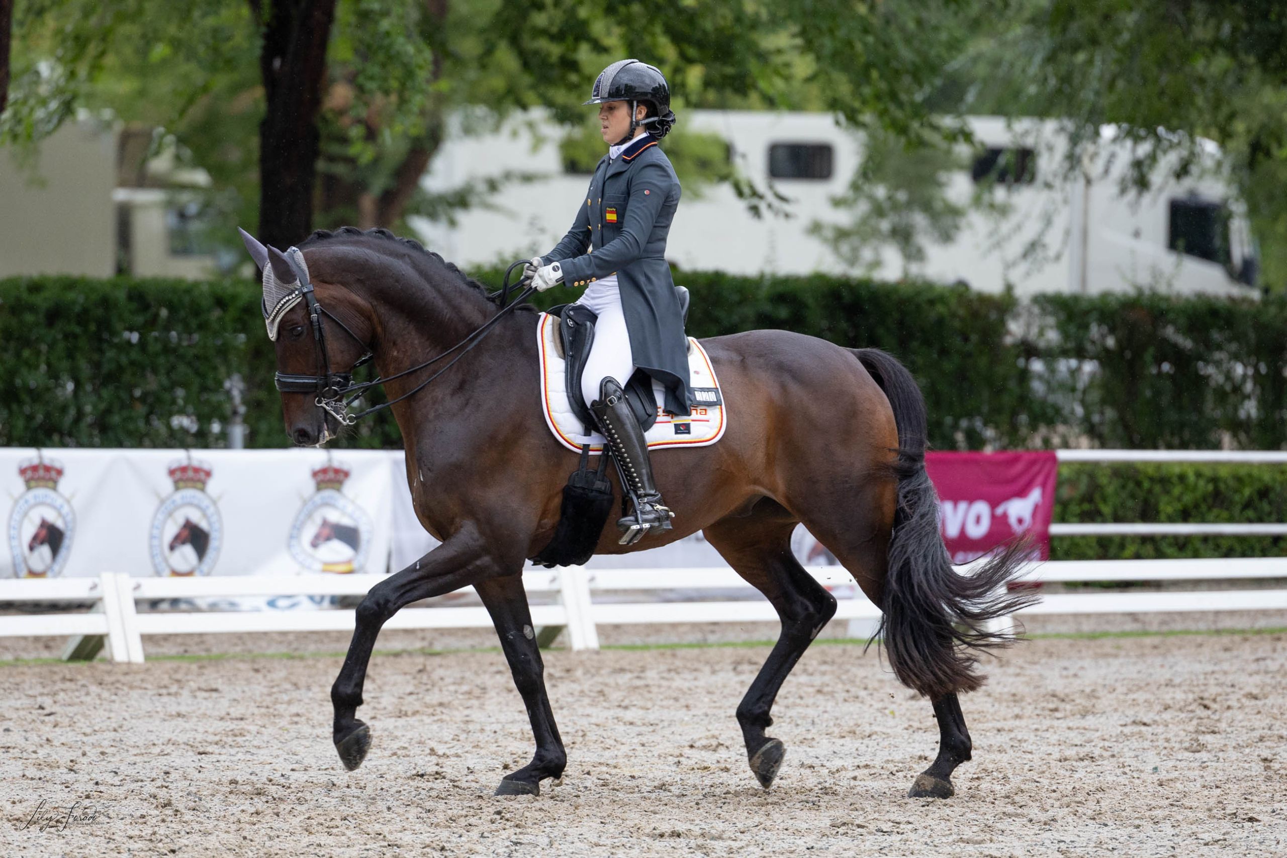 Tanto la medalla de plata como de bronce fue una gran batalla al estilo de Juego de Tronos. Una lucha titánica entre Bruno Cid y Lucie Thèrese Moreillon. El jinete andaluz, Bruno Cid es experto en finales de Campeonatos de España, pero siempre se queda a las puertas de las medallas . Años más tarde y con más experiencia, Bruno Cid con Fernando ha sido una de las grandes sensaciones de este campeonato. Su progresión ha sido meteórica, puesto que ha ido de menos a más. En la primera y segunda jornada selló una cuarta posición, pero en la final se situó en la pole position (74.055 ). Tanto él y Fernando forman un binomio relativamente nuevo, pero la conexión en pista es latente. El ejemplar cuenta con una gran calidad de aires y hoy bailando al son de las melodías de Rocky y Creed, Bruno presentó un grado alto de dificultad en su coreografía, destacando los cambios de pie. Tras rozar el podio en dos ocasiones, finalmente hoy Bruno se ha podido quitar la espinita y se ha subido con gran honor en el segundo escalón del podio, el de color plata (211.967)
