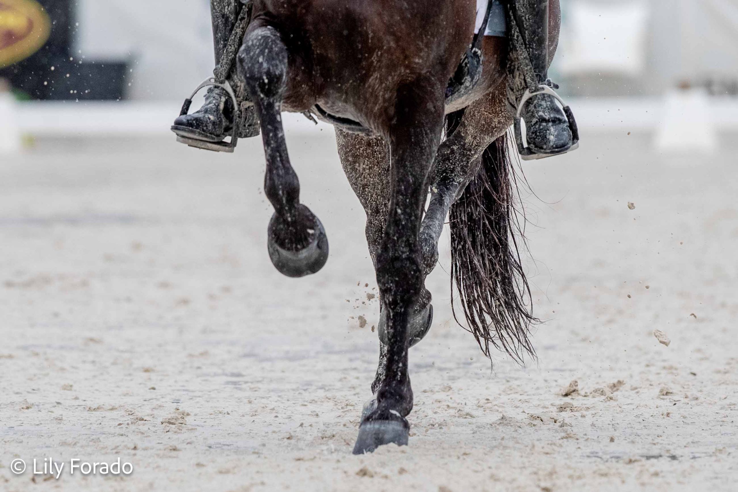 Ayer los adictos a la Doma Clásica pudieron presenciar el primer asalto del Campeonato de España Absoluto. La segunda jornada de competición, se encontró con un invitado no deseado, la lluvia, que condicionó toda la competición y deslució cada una de las pruebas. Las pistas drenaron todo lo posible, no obstante, los jinetes del tercer y cuarto bloque del Gran Premio, navegaron en una pista llena de charcos dificultando la ejecución de los ejercicios.