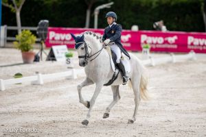 Dejando de lado el top 5, la sexta posición fue para Alejandro Asencio con Gaviao Dos Cedros. El hijo de Hostil, cuenta con una gran colección de ochos en el piaffe y passage. No obstante, en la parte de galope es donde se ve menos rodaje. En la diagonal cada dos trancos, el caballo navegó en la pista de charcos sin rectitud . Sin nada que perder, su 73.022 lo sitúa con opciones en la pelea para darlo todo en el GPS. La séptima posición recayó para Juan Antonio Jiménez con su segunda montura Quartar (71.109), le sigue detrás Lucia Gallardo con Hip By Johnson (70.913) y luego Claudio Castilla con sus dos ases de competición Hi Rico-Do Sobral (70.848) y Lario de Adama de Susa (70.652).