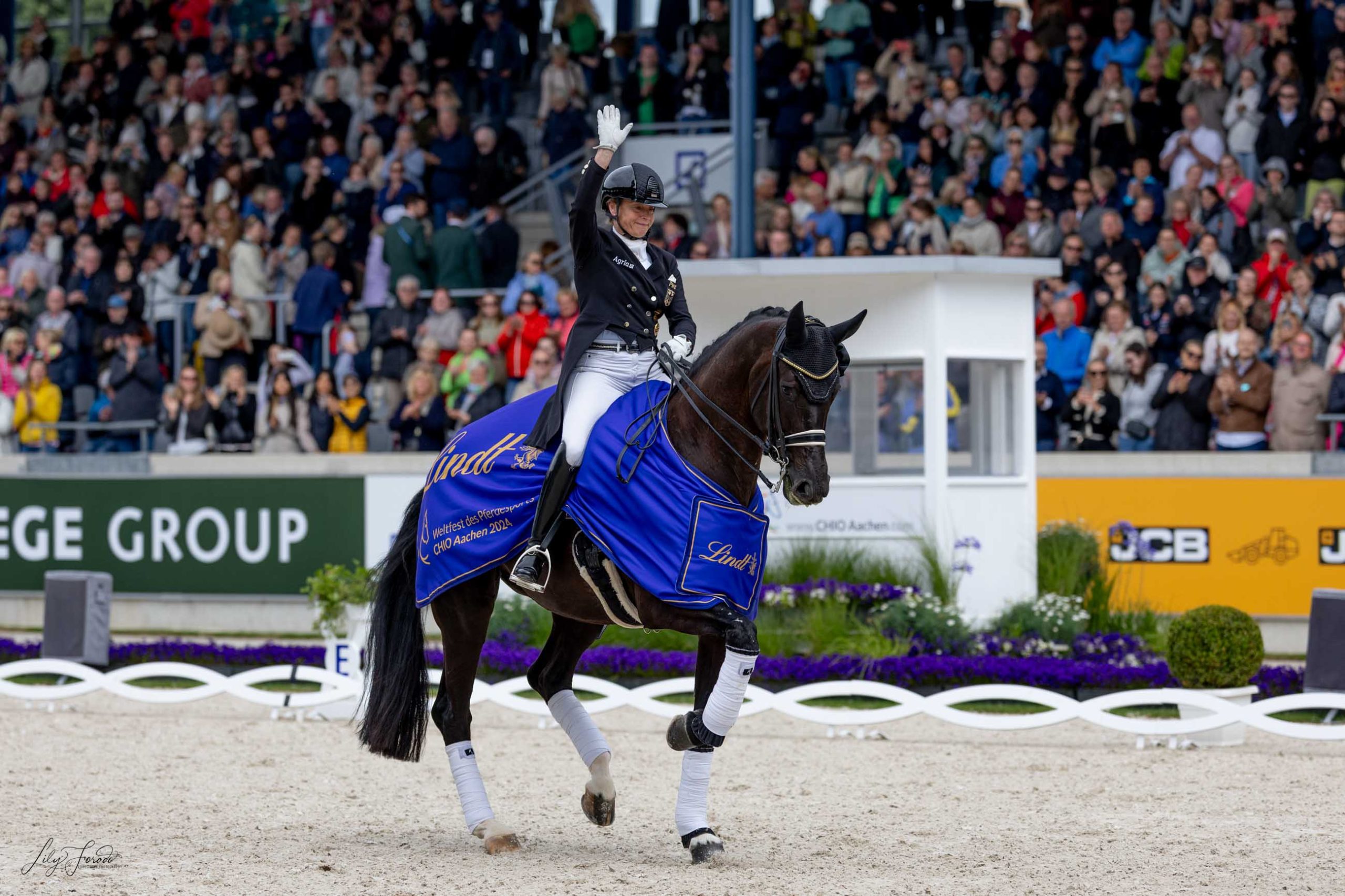 Hace una semana, a las 8:30 de la mañana arrancó la prueba reina de Aachen de Doma Clásica: la Kur Freestyle. Reservada para los 18 mejores binomios, esta prueba coronó la nueva campeona de Doma Clásica del Festival Ecuestre de Aachen de 2024. Desde el domingo pasado, el nombre de Isabell Werth vuelve de nuevo a aparecer en el gran mural de campeones de Aachen.