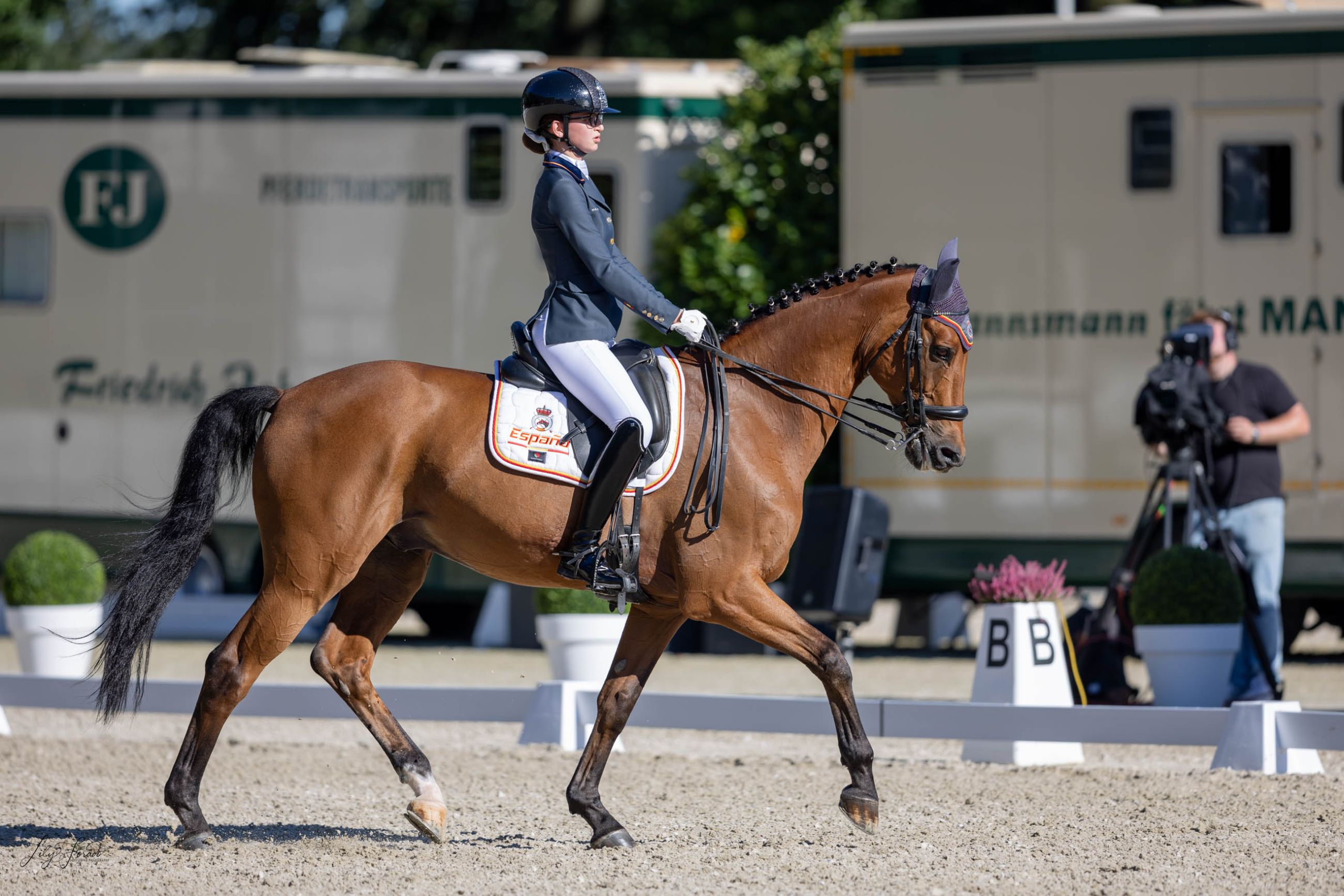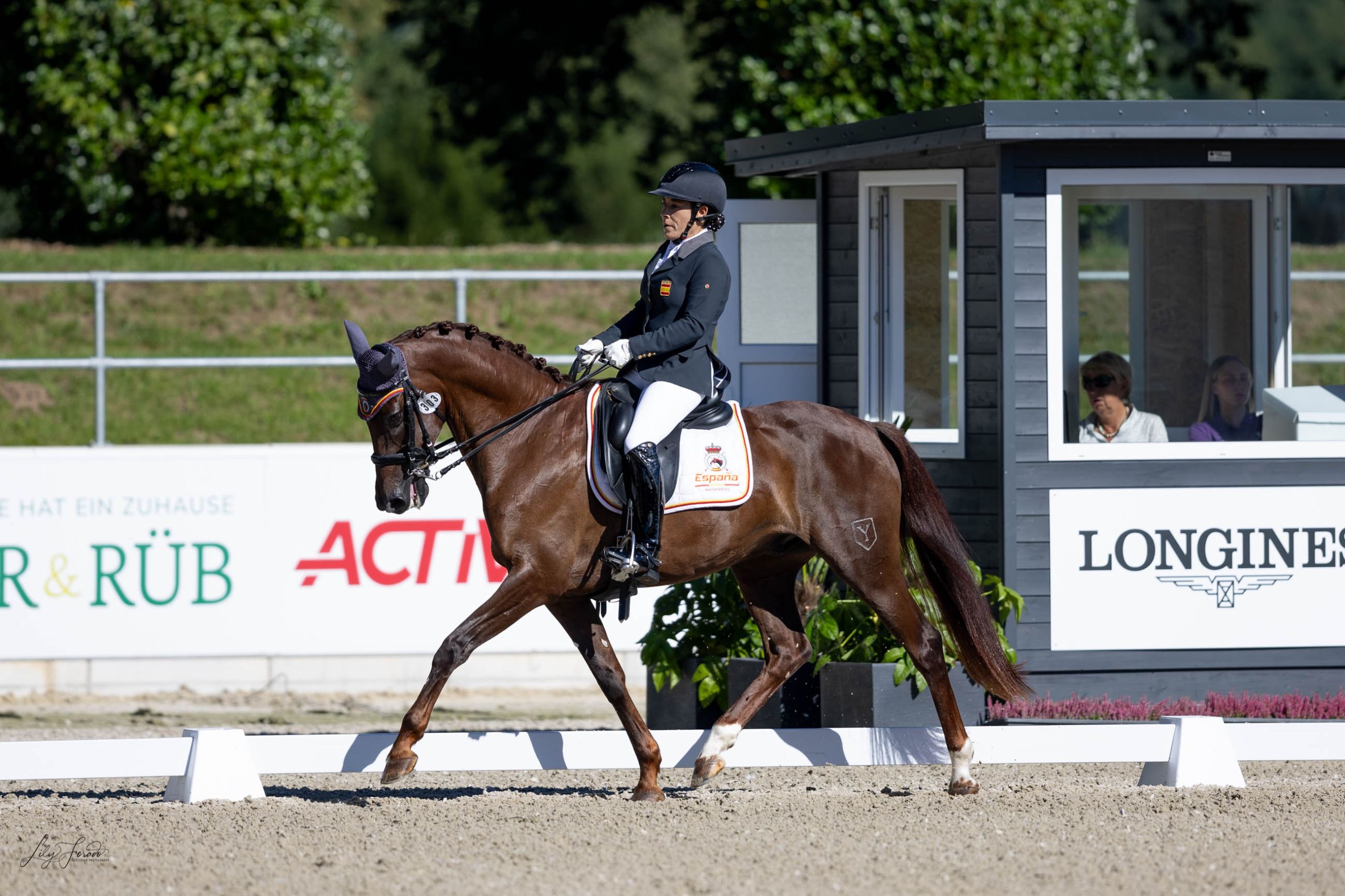 La última integrante de la delegación española en competir y siendo la más joven de todo el concurso con sus 15 años es Carla Onrubia con su compañero Fuerstenau (Grado III). La amazona catalana fue a por todas y tranco a tranco fue enlazando los ejercicios con gran armonía. Con un notable 68.033 % ha copado la séptima posición.