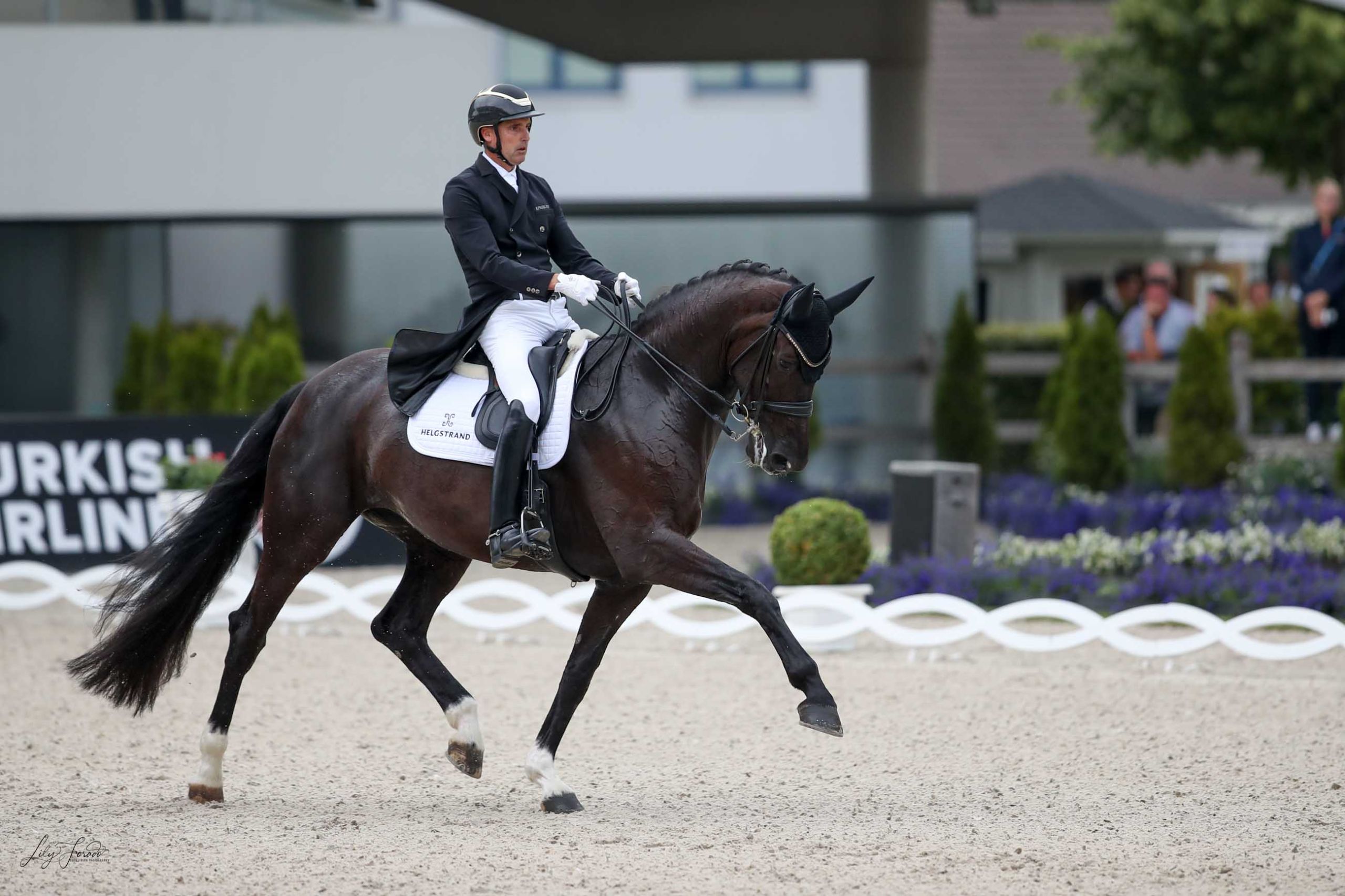 El trio de campeones ha sido para Daniel Bachmann con su diamante en bruto Vayron. Dicho caballo lo montaba previamente Helen Langehanenberg y cuyo debut con Bahcmann en el nievel absoluto fue el año pasado. El caballo cuenta con una calidad de aires muy buena , sobre todo en las extensiones, pero en ciertos ejercicios se ve aún la falta de rodaje en el nivel. Con algunas imprecisiones en el galope su nota final ha sido de 75.131.