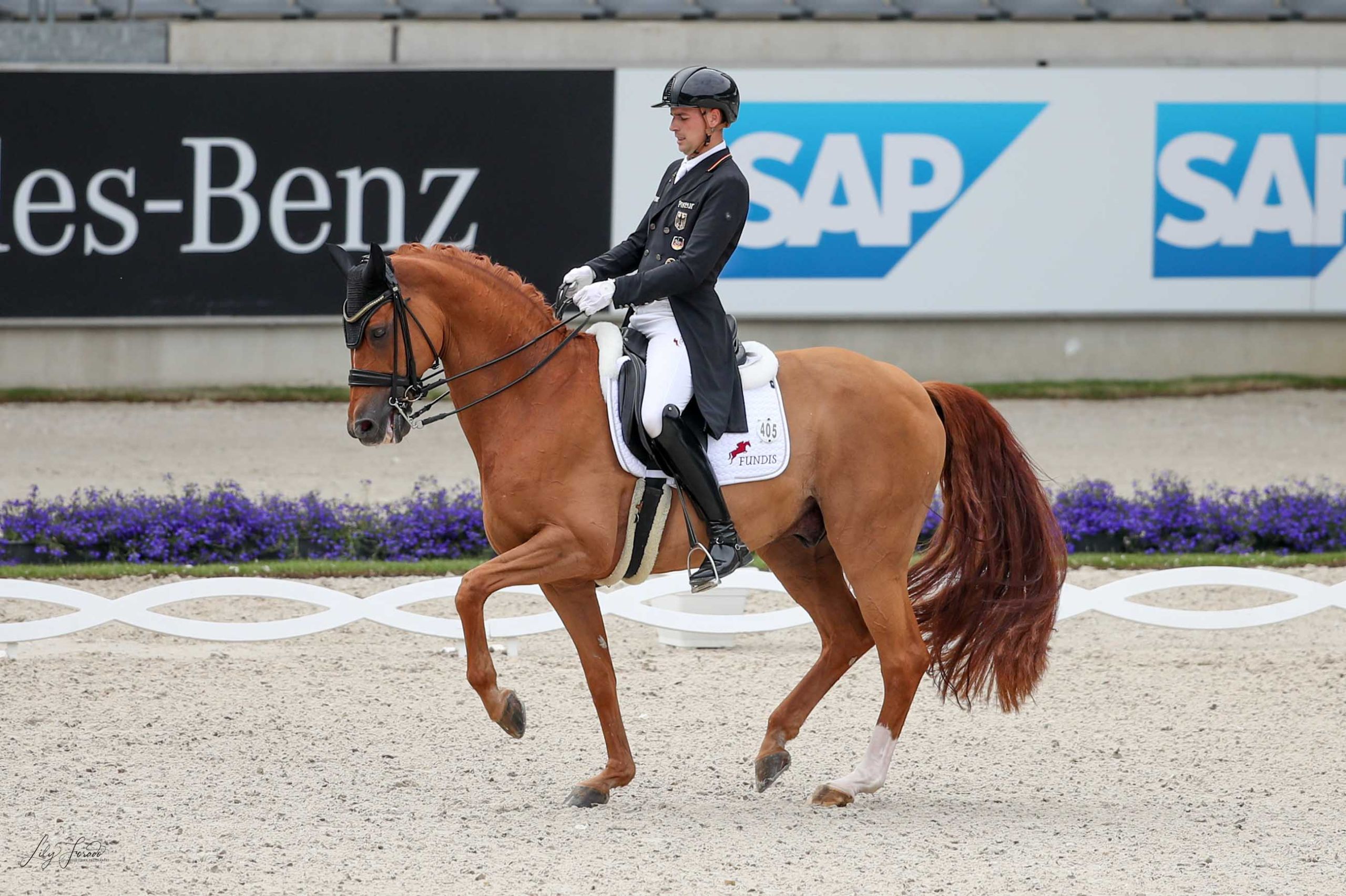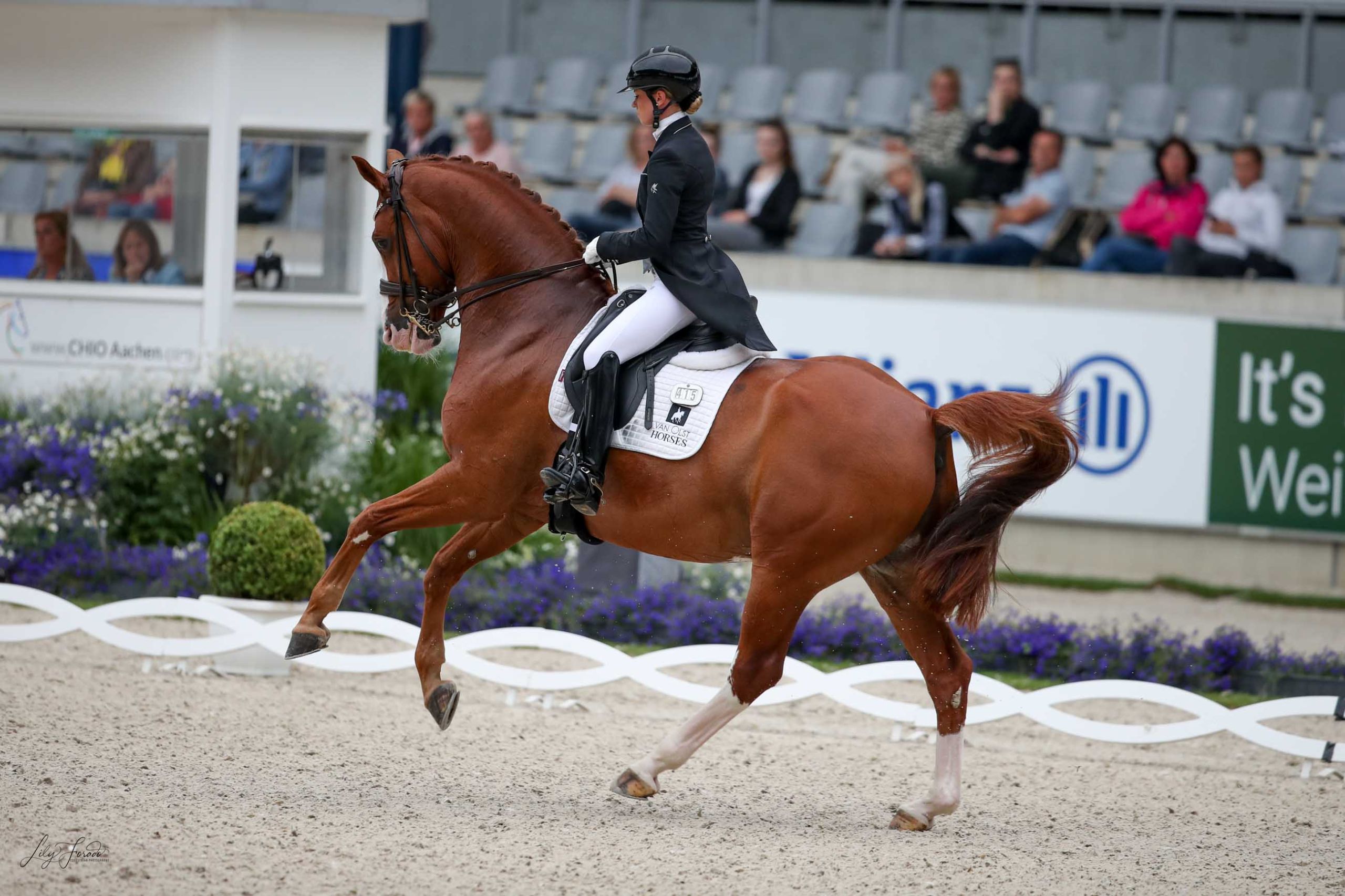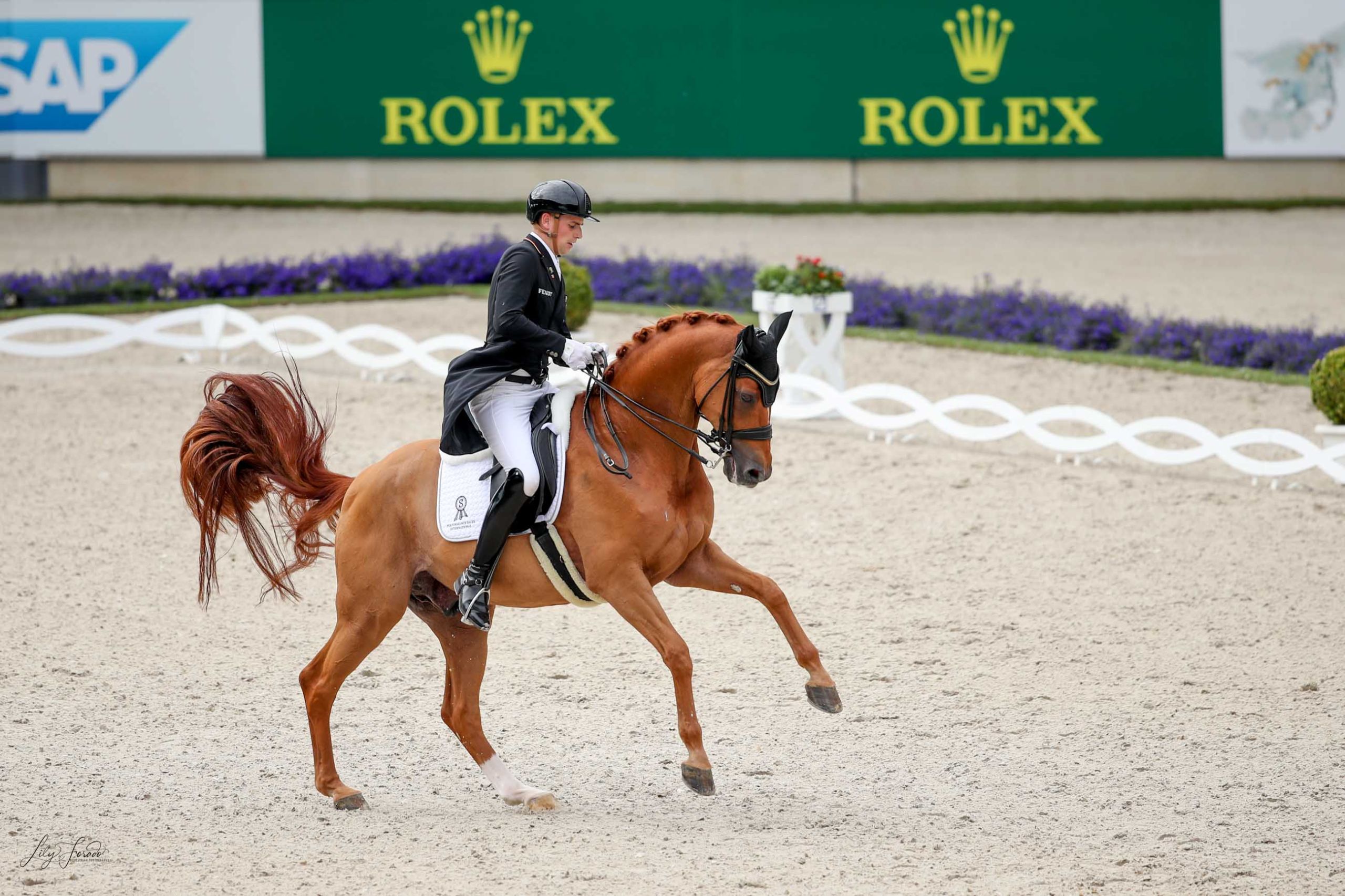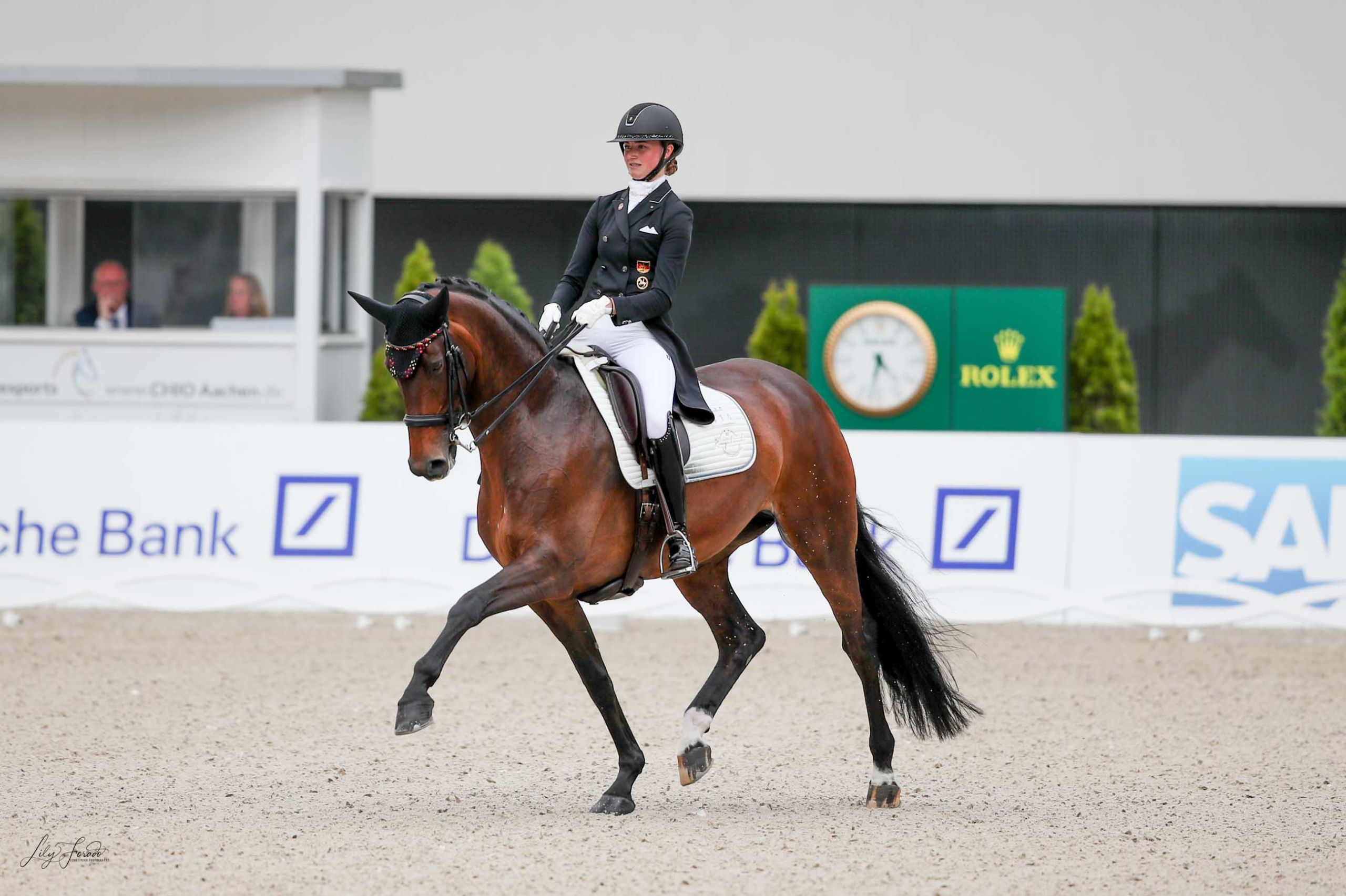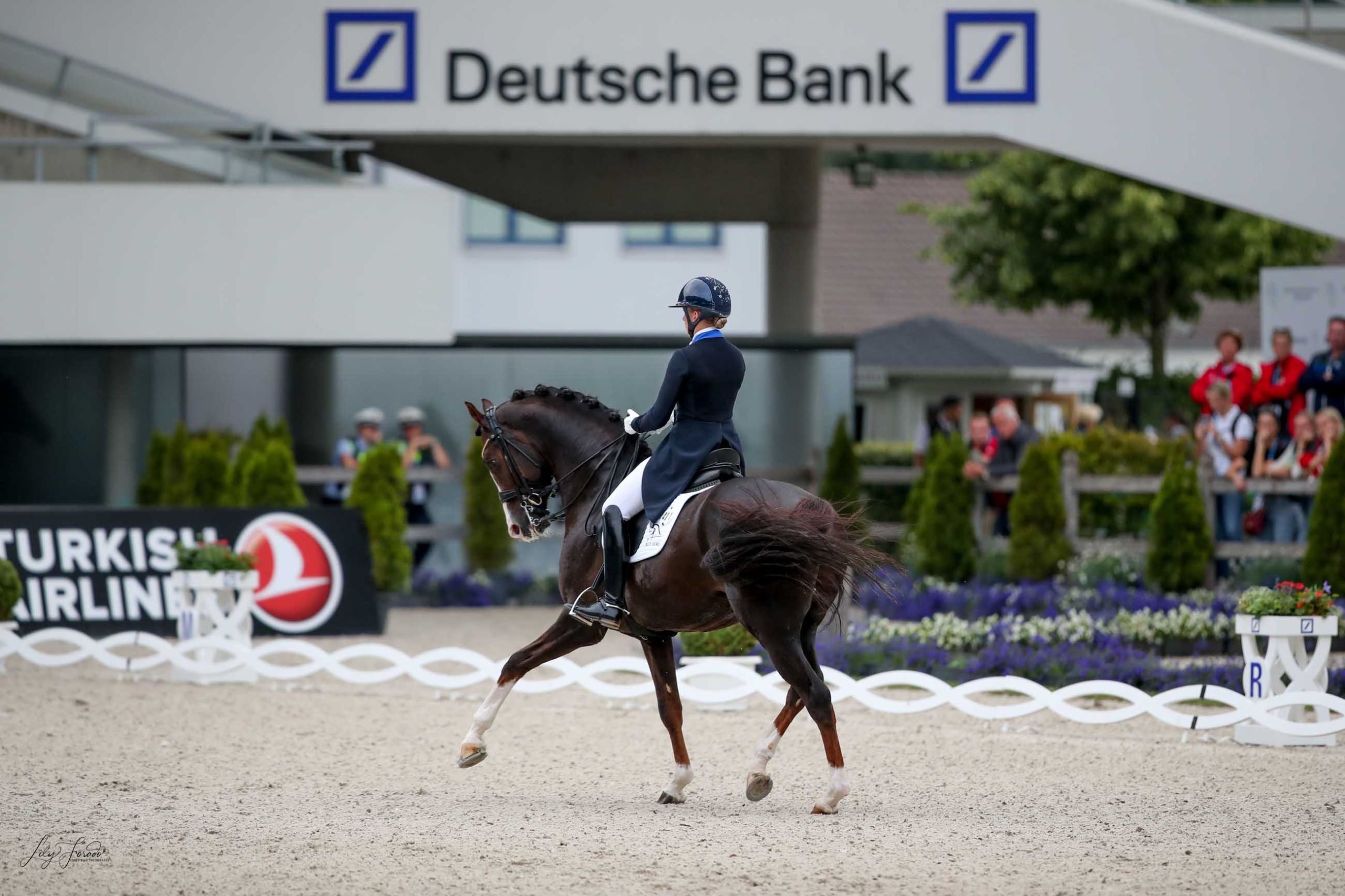 Como bien es sabido Aachen es uno de los escenarios de selección y observación para las naciones . La primera en abrir pista fue ni más ni menos que la campeona de Europa de U25 en 2021, Semmieke Rothenberger con Flanell. Los jinetes fueron pasando y ya en el tercer bloque las medias estuvieron por encima del 73% fácil. Finalmente, el gran ganador y protagonista de la tarde ha sido Frederic Wandres con su gran compañero de hazañas Duke of Britain FRH con un 76.935%. La nota podría haber sido superior, pero el ejemplar tuvo un error en la diagonal de cambios cada tranco.