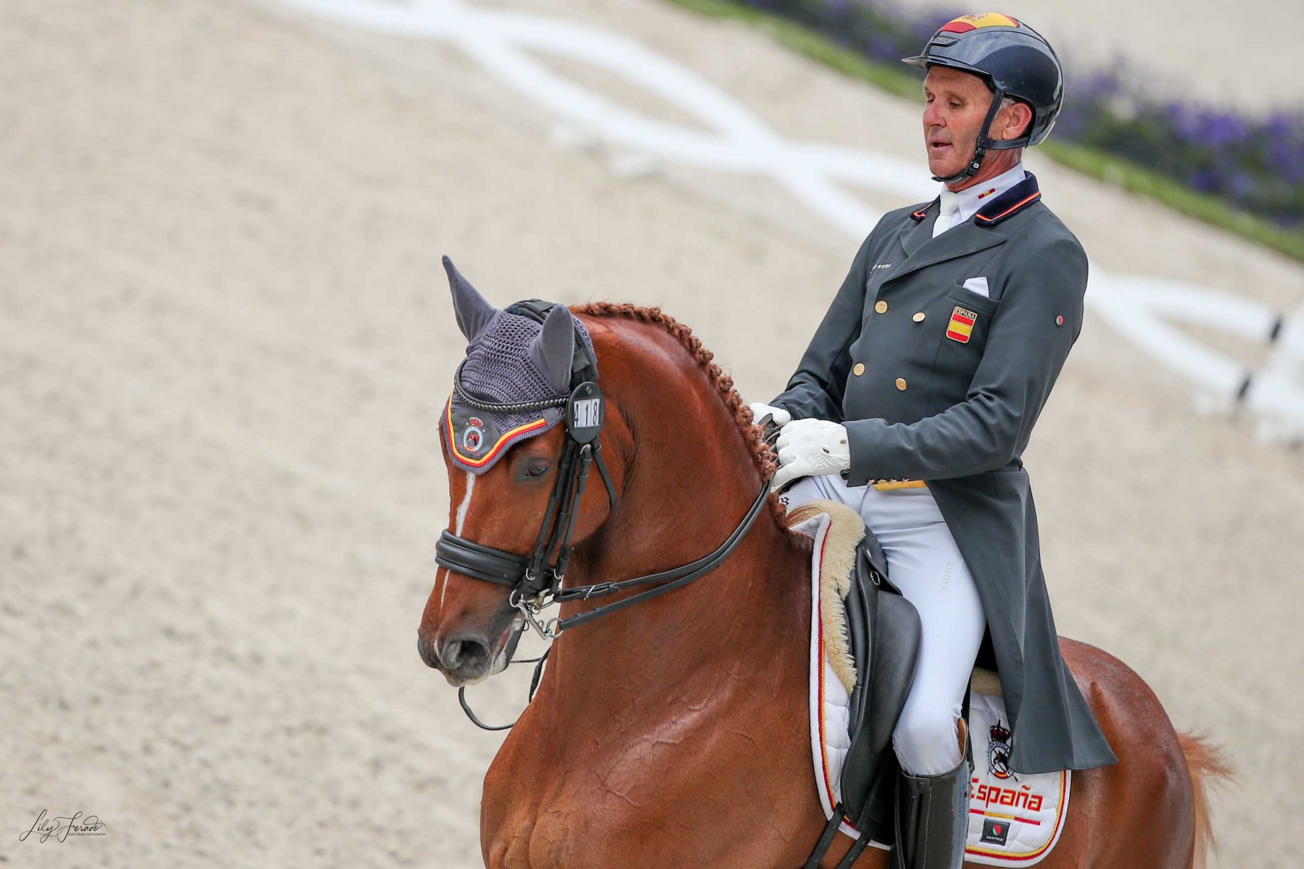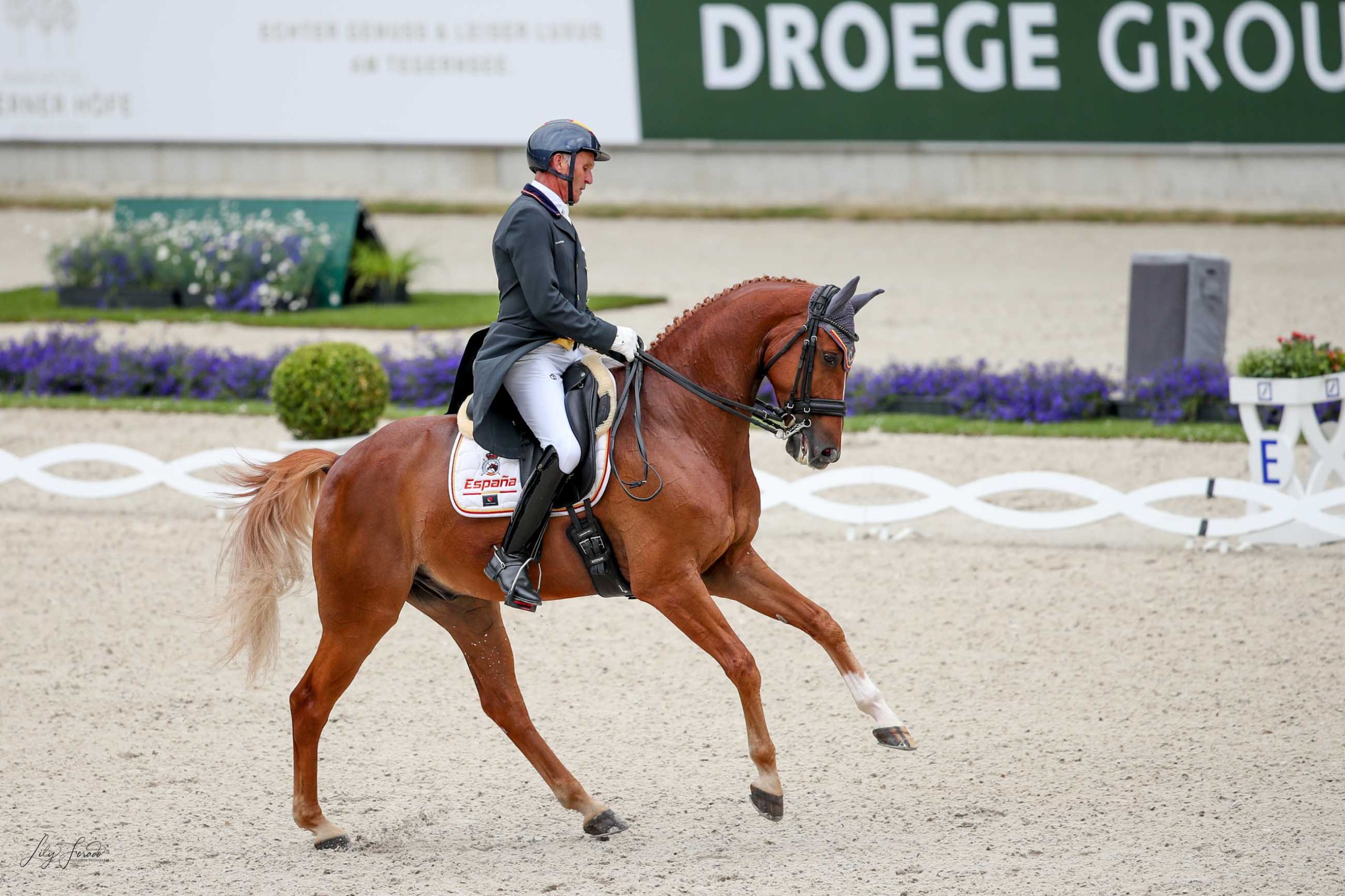 A destacar el nivel, puesto que de los 23 participantes, los 16 primeros están por encima del 70%. Por último y no menos importante, Juan Antonio Jiménez ha debutado en Aachen a su segunda montura, Quartar. Concurso tras concurso, dicho binomio va cogiendo más experiencia en el nivel. Rozando el 70% hoy , concretamente con un 69.739% (Décimo octava posición), el elenco de jueces ha premiado las piruetas al galope. con múltiples 7,5. Toda la parte del trote ha sido muy fluida y elegante. En el primer piaffe, el caballo le costó coger el ritmo de las batidas y eso se vio repercutido en la nota, de lo contrario, el último fue muy bonito y premiado con 8.