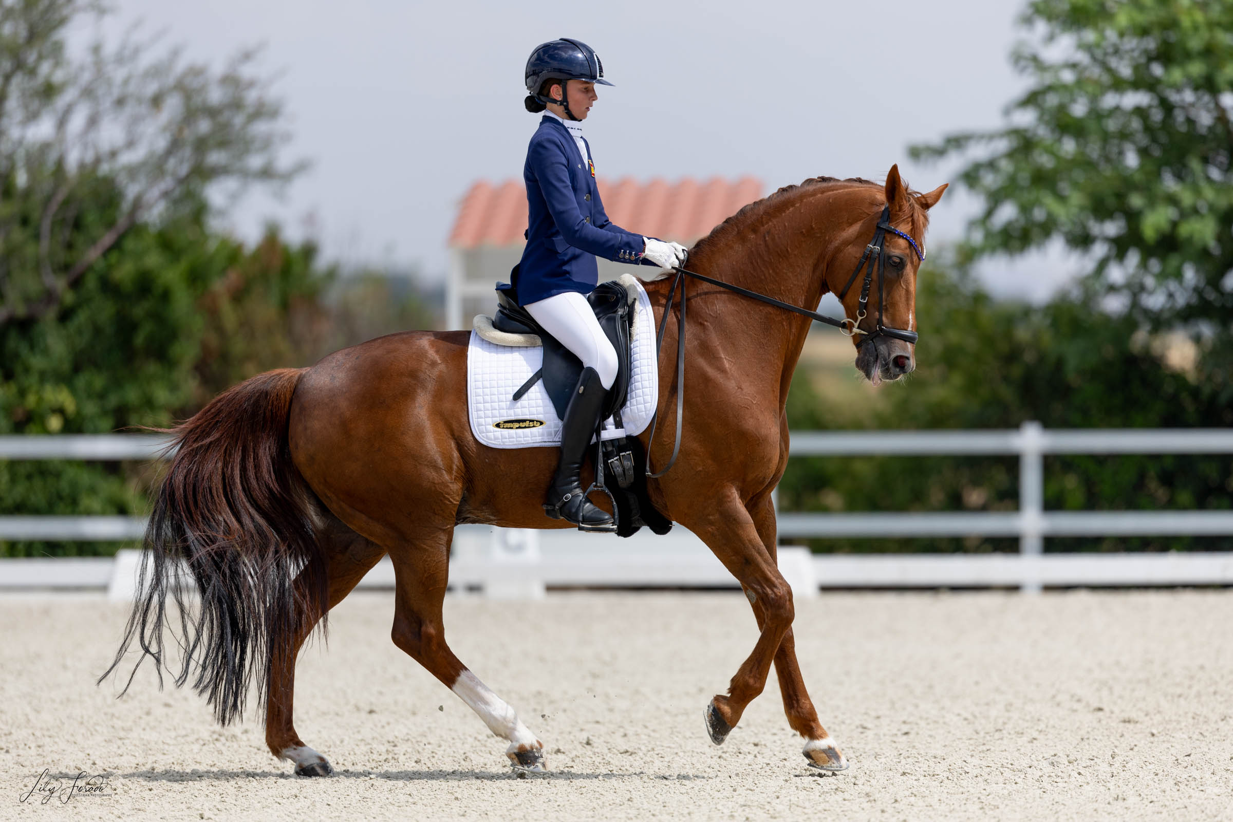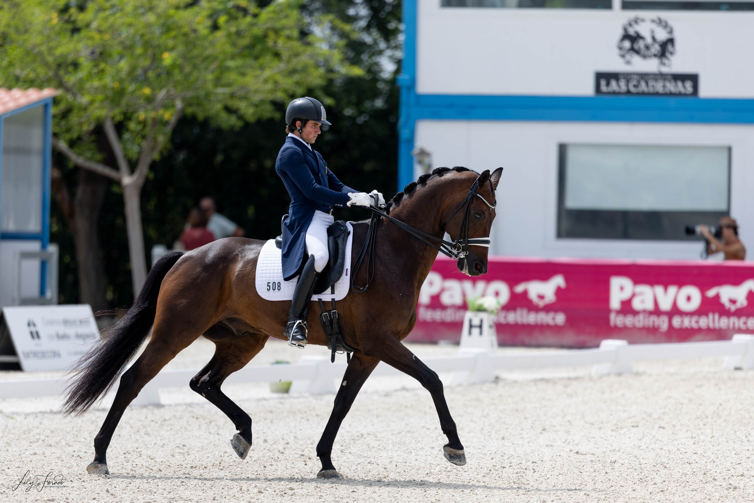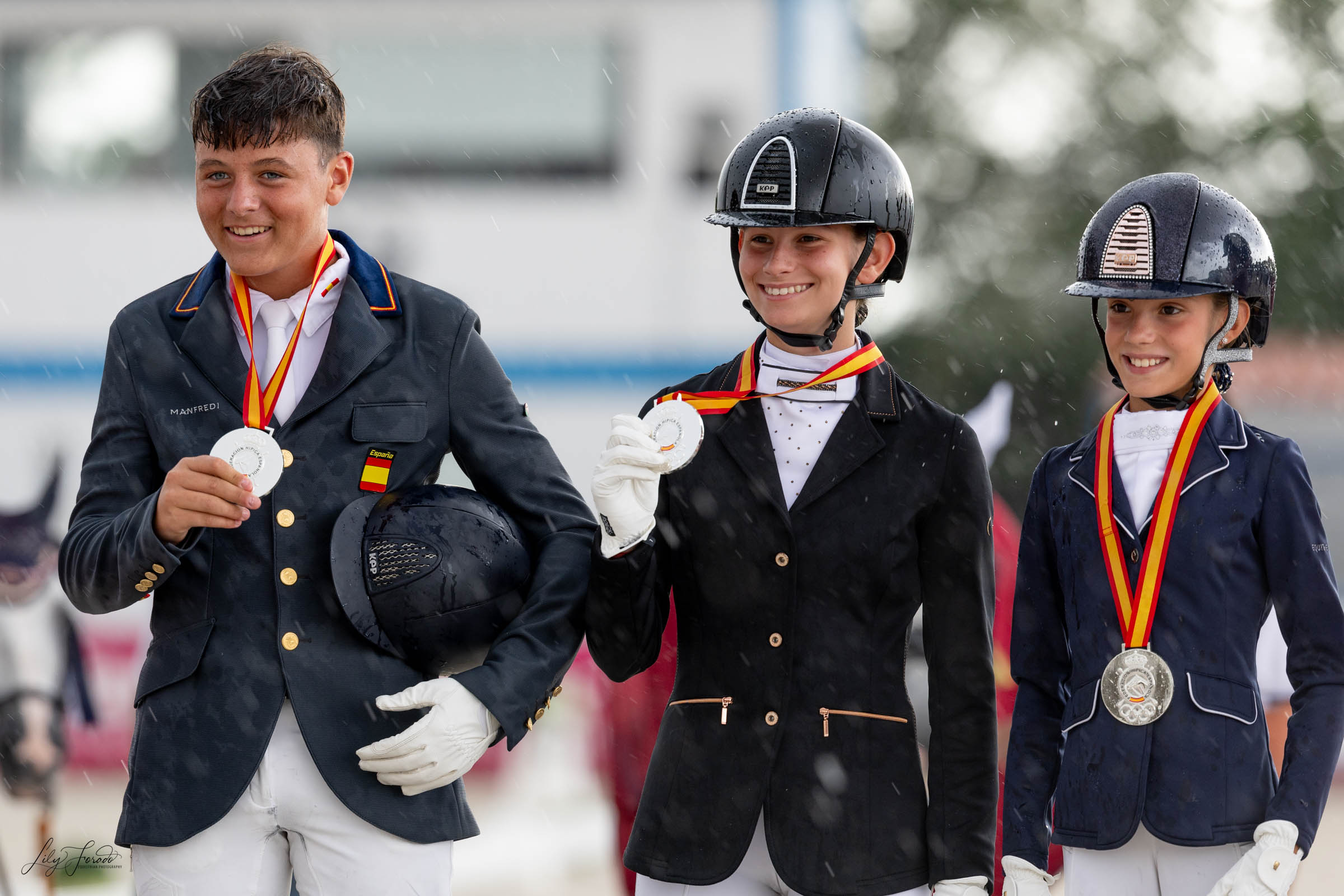 La pupila de Valvanera Palacios, Triana Vargas  selló su segunda victoria consecutiva dejando claro que viene a pelear por el metal dorado (78,759%%), aquel que ya ganó en 2023 en el nivel de Alevin. Con muy poco que perder y mucho que ganar, la alumna de Victor Álvarez, Ònia Maldonado a lomos de Dinky Toy Van Het Bloemenhof    fue a por todas. Dicho y hecho ha escalado cuatro posiciones comparado con la primera jornada gracias a su potente 78.066. La tercera posición ha sido para el finalista europeo, el jinete murciano Alejandro Navarro con su yegua Inquieta FSR y un acumulado de 76.142. Su nota pudo ser mayor, pero tuvo una imprecisión en una de las transiciones descendientes de Galope a Paso.