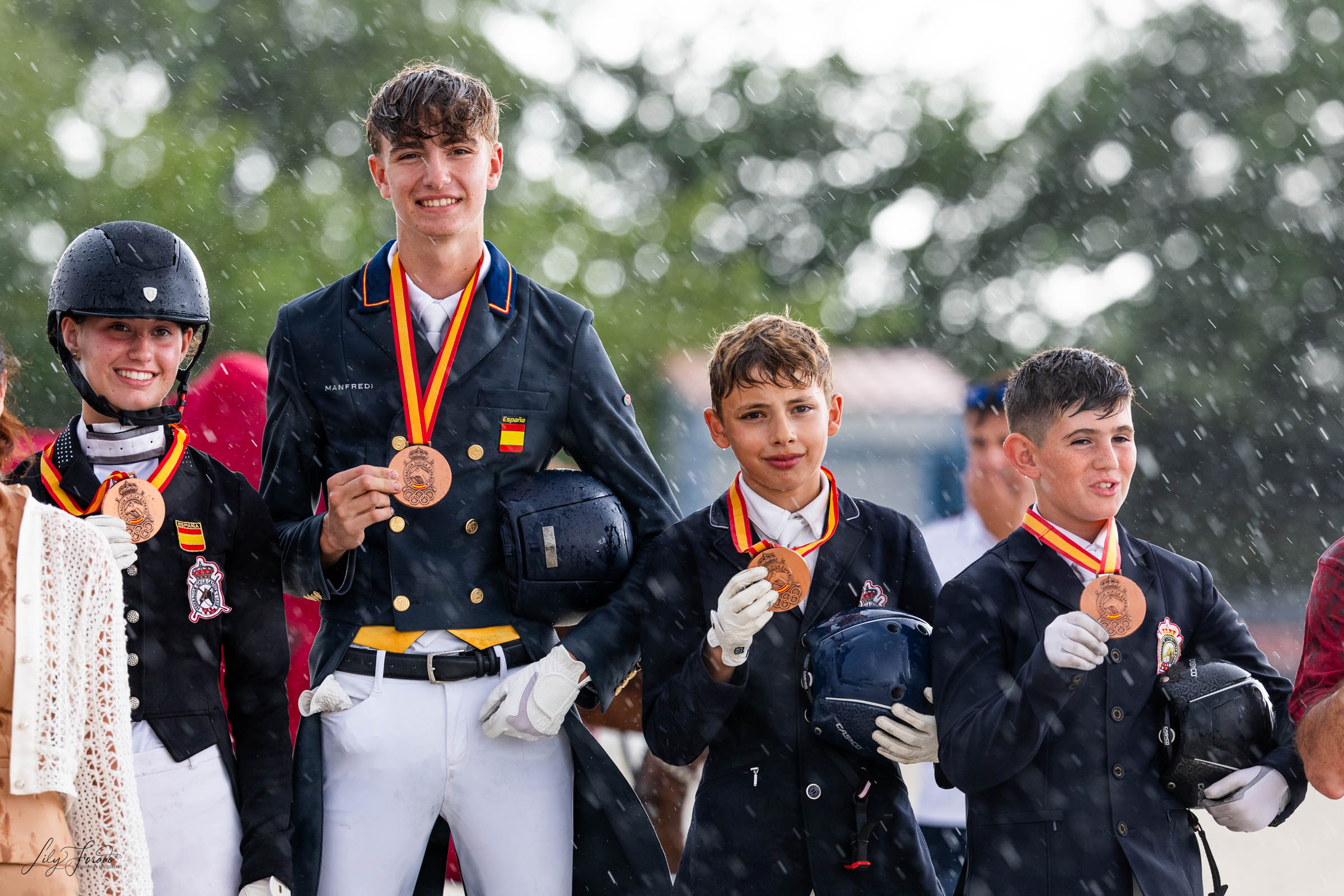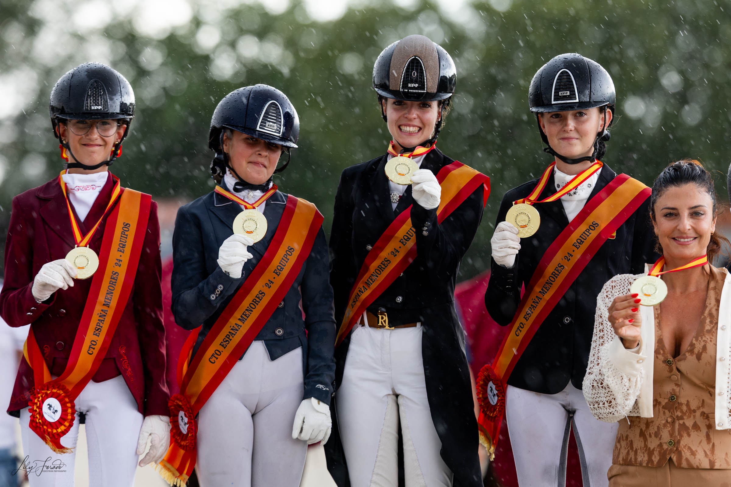 En la segunda  jornada del Campeonato de España de Menores 2024 en el Club Hípico Las Cadenas , los equipos campeones de las diferentes CCAA se han colgado las medallas . Tras una jornada intensa desde las ocho de la mañana hasta las 18:30. La lluvia de nuevo  aguó la fiesta en la proclamación de equipos.