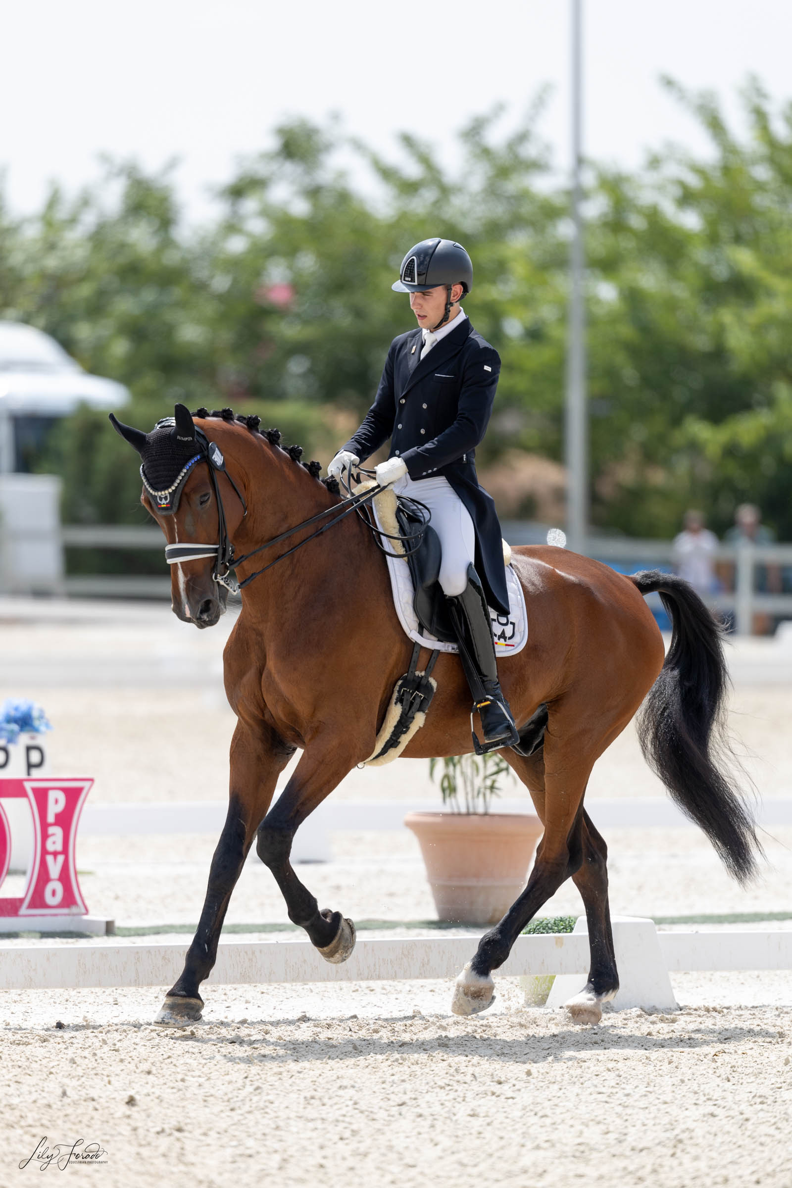 Bruno Cid medallista de bronce el año pasado ha vuelto a la carga hoy y ha realizado una de las grandes remontados e incluso mejores pruebas de la jornada. El jinete andaluz a lomos de Fernando ha montado y peleado cada tranco en pista. En las Extensiones ha volado, los cambios de pie han sido saltados y las piruetas al galope han presentado un gran remetimiento de posteriores.