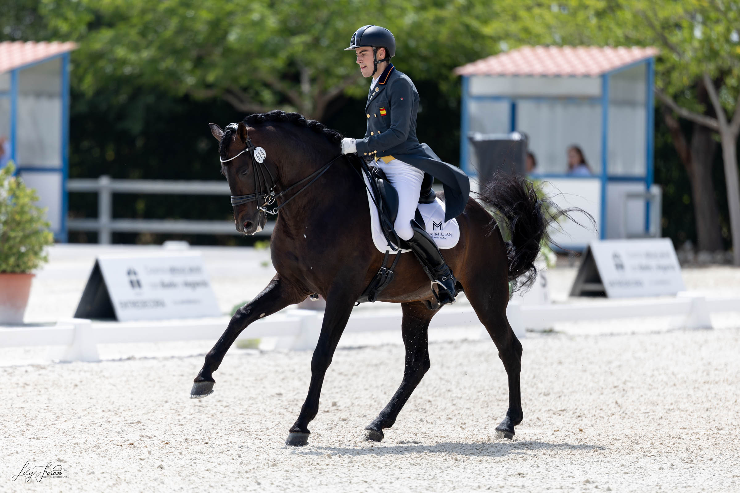 El trio de campeones lo ha cerrado el alumno de Juan Antonio Jiménez, Pablo García con Let It Go (70.059), le sigue detrás Javier Guillén con el P.R.E Resuelto AS (69.853). El líder de la primera calificativa, Jaime Gregorio con Rock IT  no pudo repetir proeza, puesto que en la segunda pirueta el caballo se adelantó y se paró de seco, pero el jinete pudo resolver la situación y continuar con el ejercicio. No obstante, eso se tradujo en una ligera pérdida de puntos relegándolo a la quinta posición con un 69.794%. Así mismo dicho jinete, Jaime con su segunda montura Archimedes 64 ha cerrado el top con un 69.206