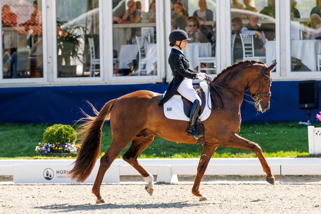 Ya en la jornada del sábado , doce jinetes pelearon por los mñaximos honores y la clasificación para la Final de Diciembre durante el CDI5* de Frankfurt. La ganadora fue por partida doble, puesto que Charlott-Maria Schürmann a lomos del semental hannoveriano Life Time FRH (por Livaldon x Fürstenball), se impusieron en la ronda final con una apabullante puntuación de 75.805%. Kira Laura Soddemann, montando a Borghese MT (por Baccardi x Laureus), quien había sido segunda en la prueba de calentamiento, repitió ese puesto en la clasificación del domingo con un 75.244%.