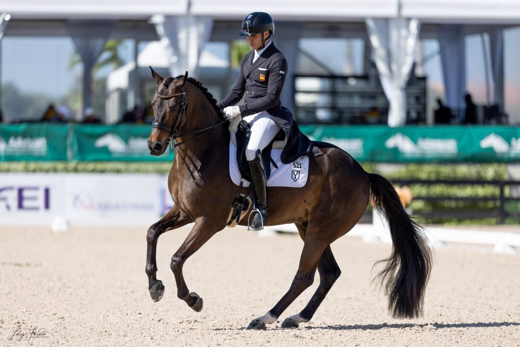 Las alegrías españolas no cesaron puesto que Juan Francisco Fernández Muñoz ha tenido un gran debut en las pistas americanas. Dicho jinete ha estado en varias ocasiones en Wellington y formó parte de una de las exhibiciones de USPRE Week en 2023 con Ulises JV II, pero nunca ha competido. A lomos de Doppelkorn ha podido encarar la línea central y ha sumado dos tercer puestos con medias de 67%.