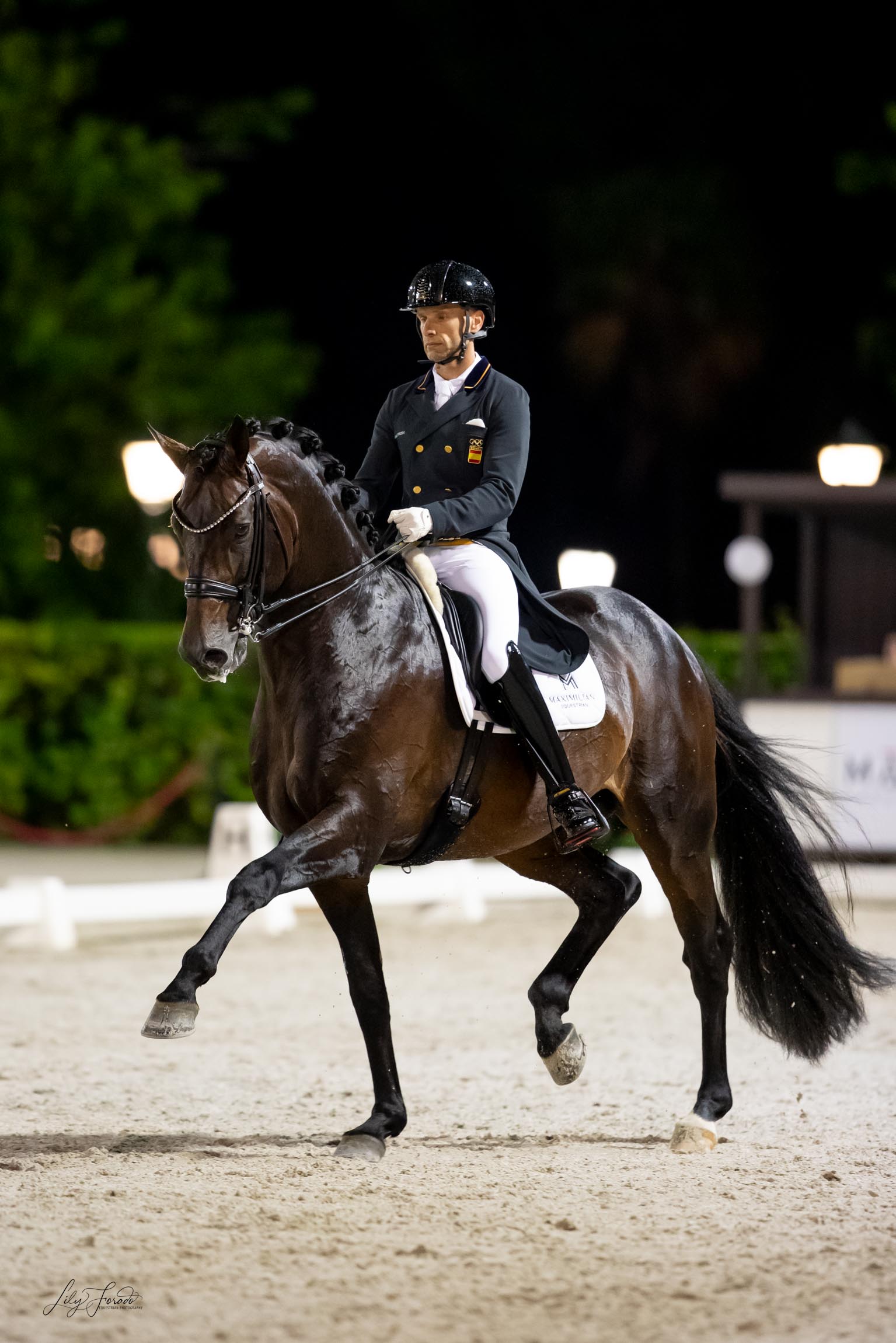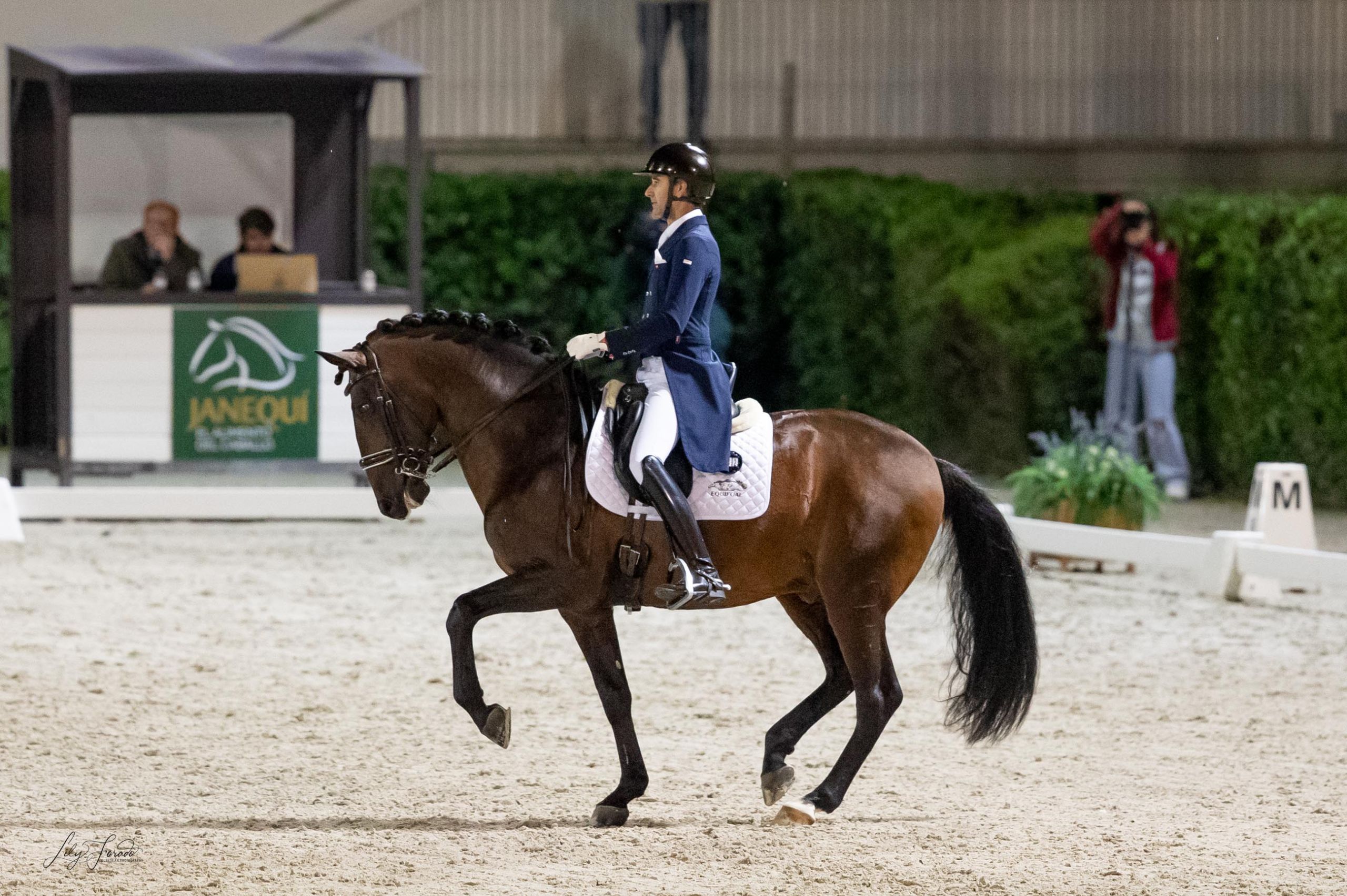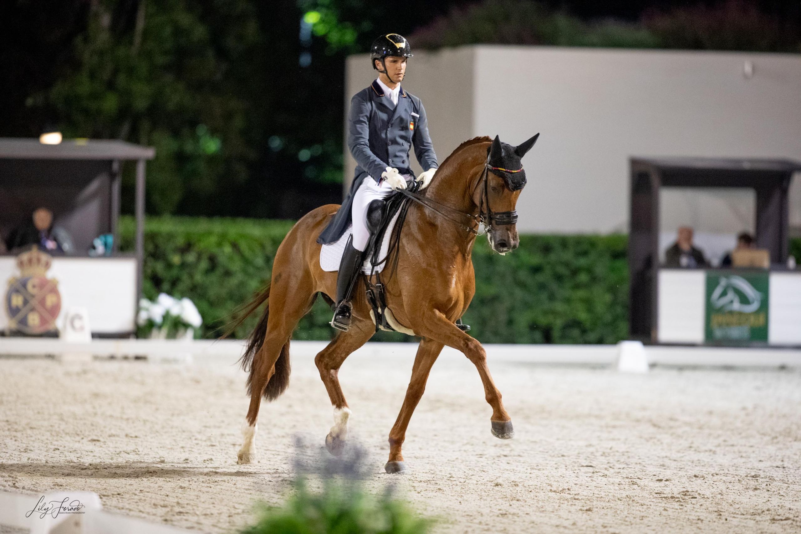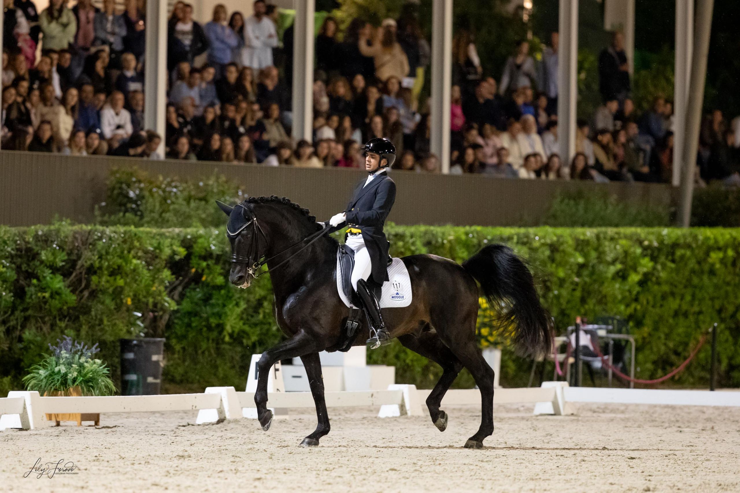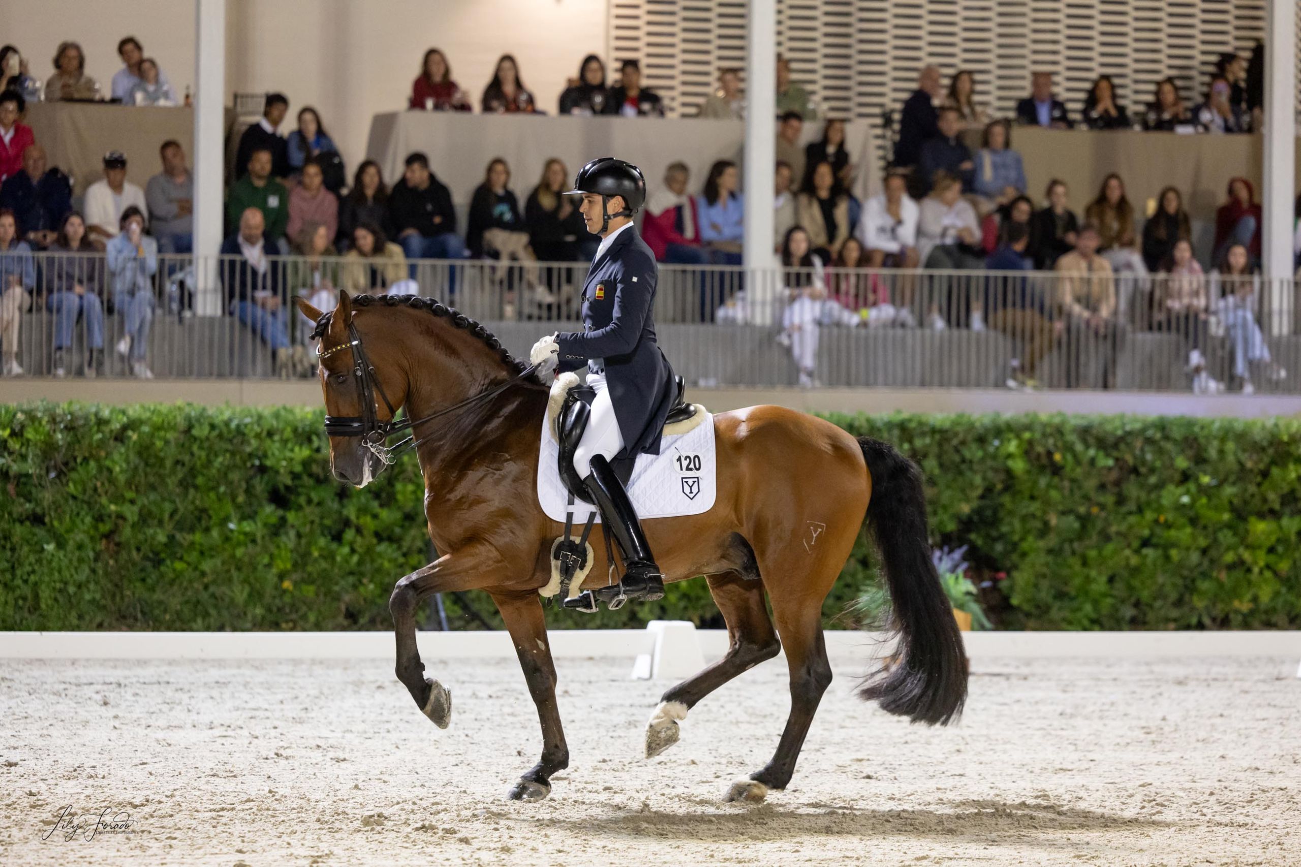Con melodías españolas y un inicio al paso con «Entre dos Aguas» de Paco de Lucía, Dockx y Malagueño LXXXIII fueron bailando. Los acordes de la guitarra española acompasaron de manera espectacular los trancos del ejemplar de Francisco Santiago. A nivel coreográfico, la dificultad presentada fue sensacional. El jinete olímpico realizó una diagonal de galope largo para enlazar con una transición al piaffe, o del paso volver a una pirueta al piaffe en una esquina. La imponente última línea central y la preciosa pirueta al piaffe, se tradujo en trancos de delirio puro y duro para el público. Todo pareció fácil, sin ningún tipo de dificultad, teniendo en cuenta el recorrido tan complejo que ejecutaron. Sellando un 80.685, encabezaron la clasificación con una nota muy difícil de superar.