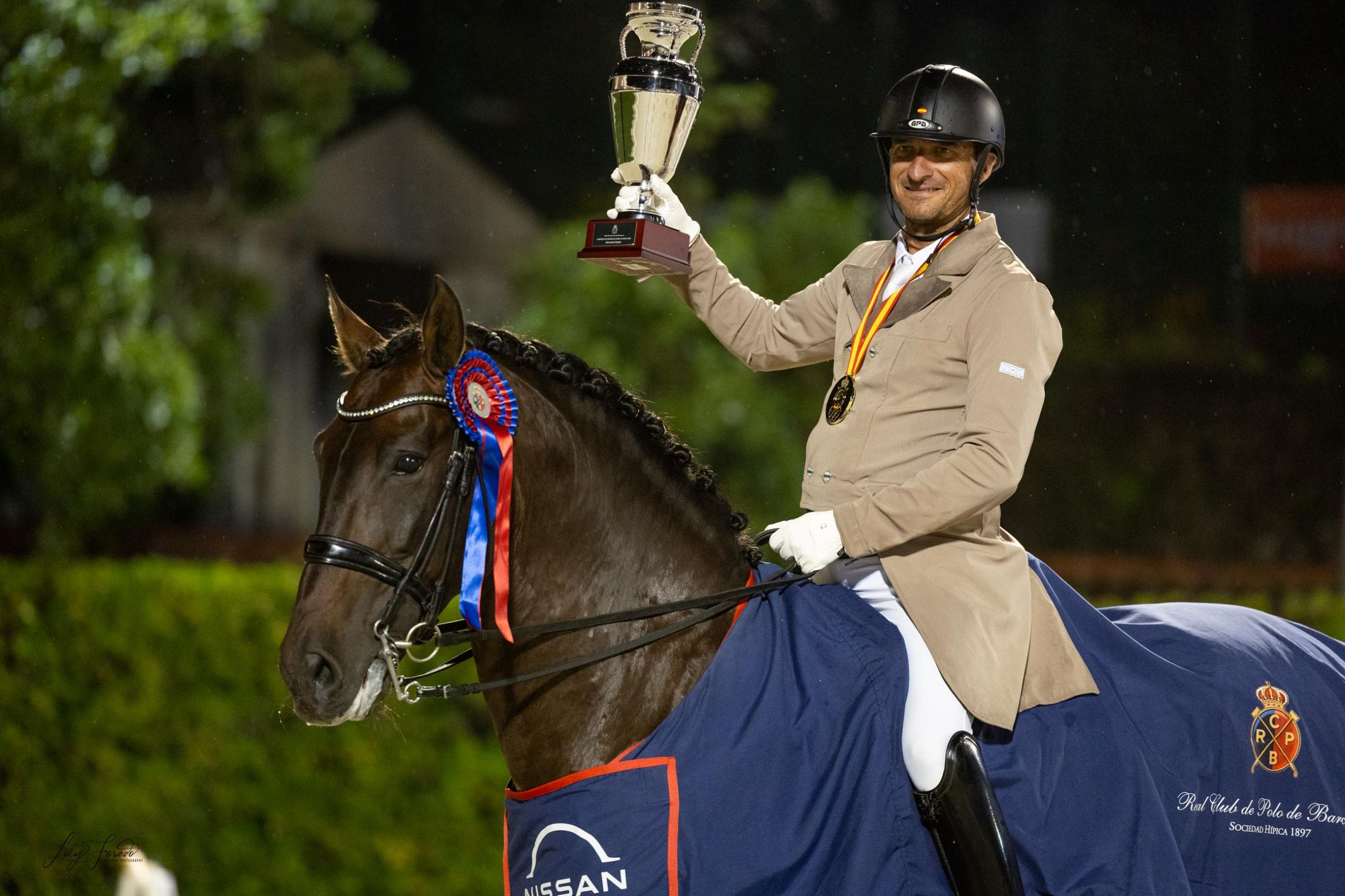 10 años después, José Daniel Martin Dockx es campeón de España. Y para que este gran triunfo tuviera aún más literatura, en un circuito dominado por caballos centroeuropeos, su compañero de hazañas Malagueño LXXXIII es un ejemplar criado en España y de raza autóctona: un Pura Raza Español.