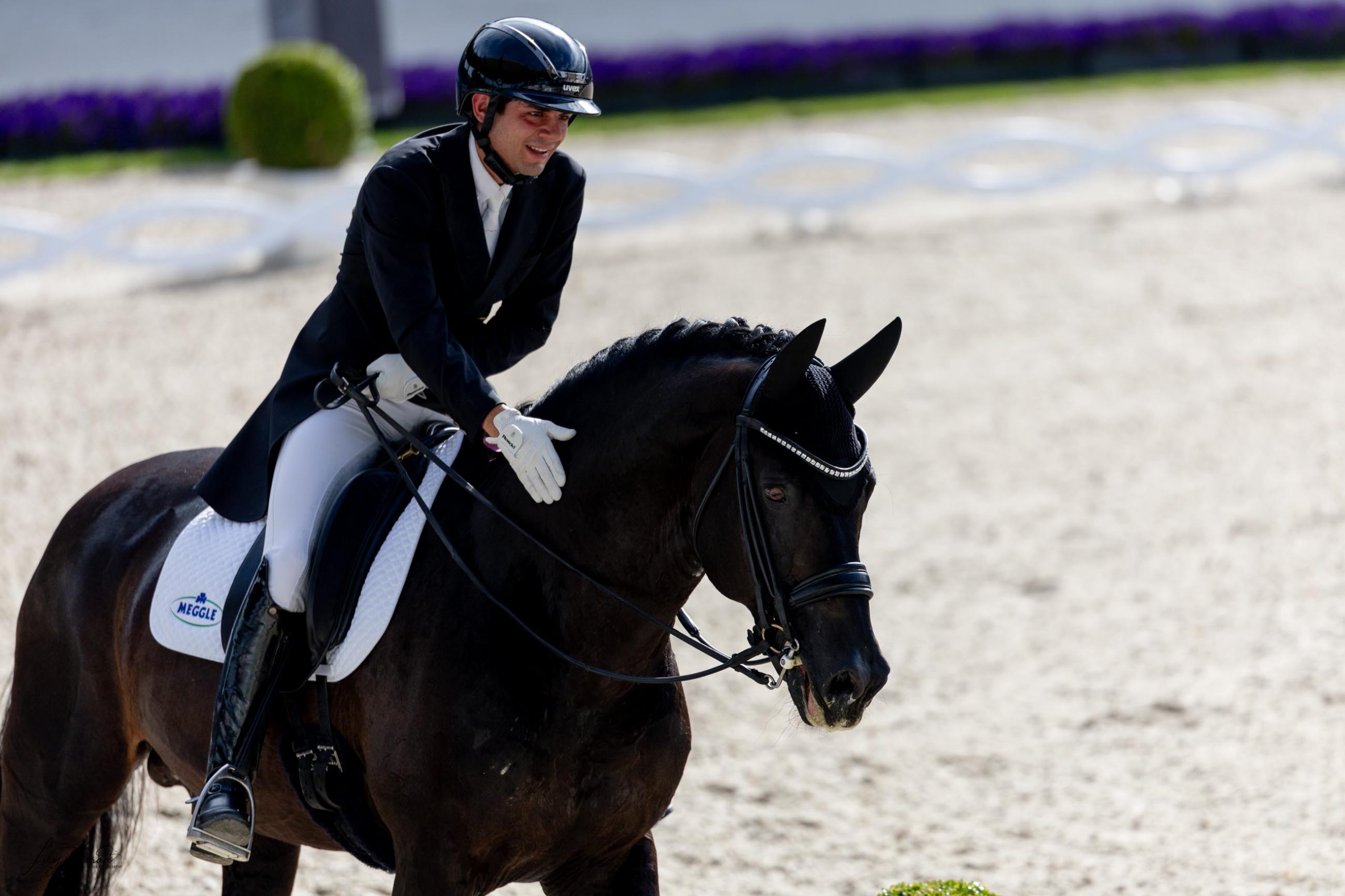 Juan lleva cuatro años en Meggle y desde entonces tranco a tranco ha formado simbiosis deportiva con Meggle’s Boston. Con el ejemplar de 18 años ha ido escalando los niveles de U25 en 2022 y en 2023 realizó su primera línea central de Gran Premio en el mes de Marzo de 2023 . Desde entonces , Juan ha ido cosechando un gran número de resultados deportivos y nuevos récords personales.