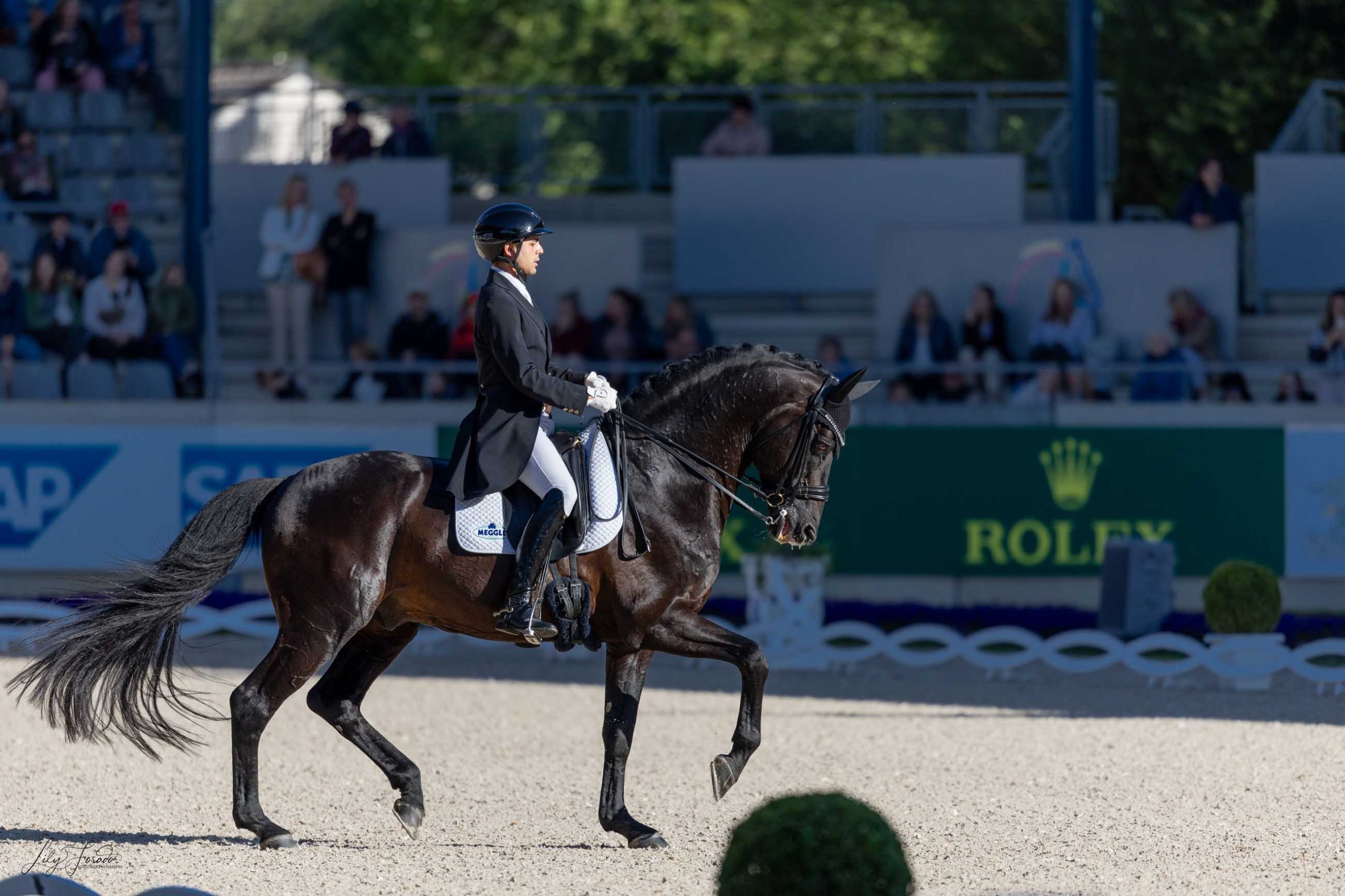 Sí, Isabell Werth con Wendy, Creo que esta mujer está a otro nivel del resto de los mortales y es impresionante verla hacerlo otra y otra vez con caballos distintos y como nunca pierde el hambre. También me emocionó mucho ver a Borja Carrascosa haciendo nuevos récords en Aachen con Sir Hubert porque es alguien que he admirado siempre mucho como jinete y como persona y el poder estar allí juntos representando a España en el 5* fue increíble.