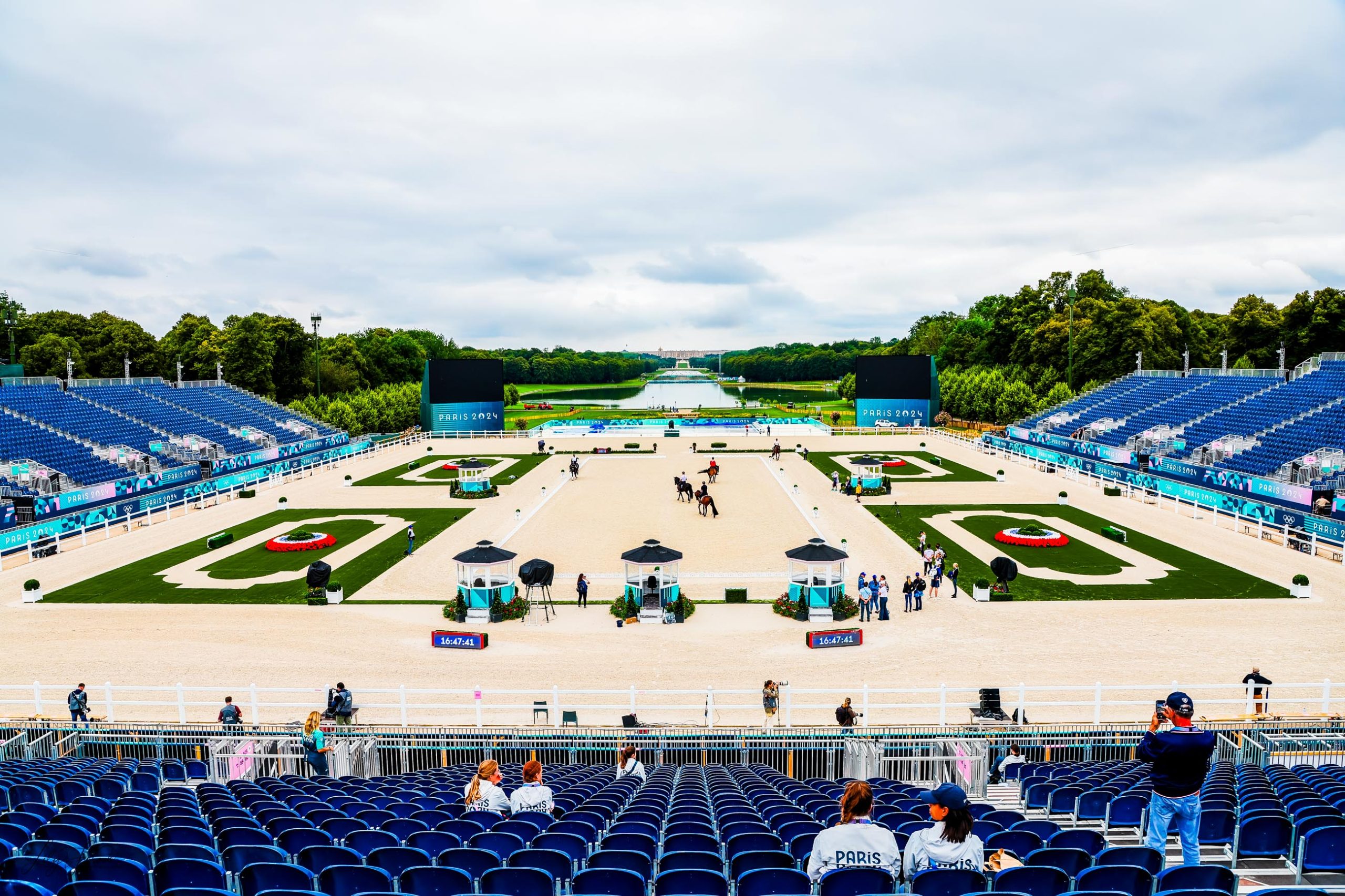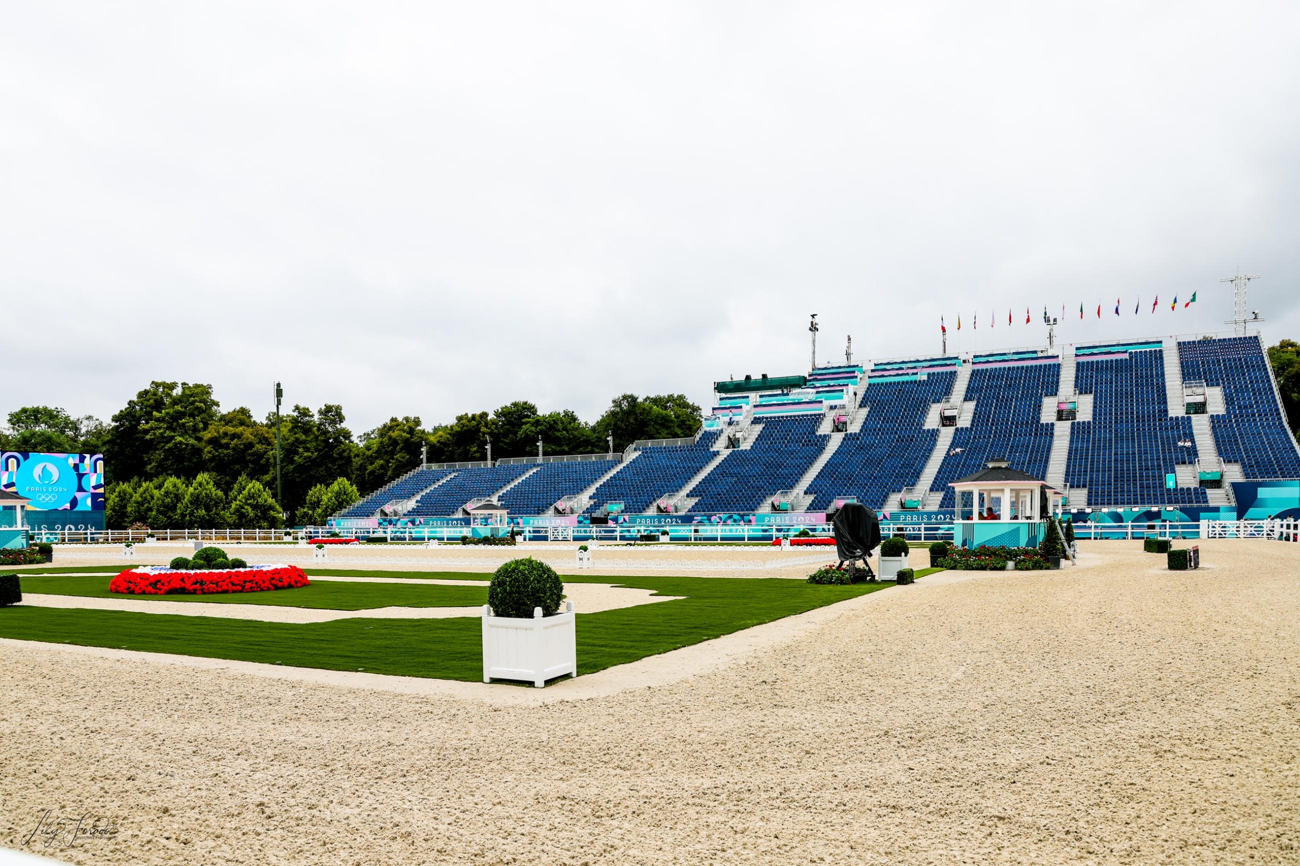 Este escenario olímpico albergará la competición olímpica tanto de completo, doma clásica y Salto de Obstáculos. La pista de competición cuenta con un sinfin de detalles , como por ejemplo en los laterales el típico jardín a la francesa con el parterre de bordado. Así mismo los colores corporativos de PARIS 2024 con los tonos azules y rosas que contrastan con el verde de fondo. Todo esta al milímetro. De los 16.000 asientos, el público cuenta con dos pantallas enormes para visionar a los atletas olímpicos.