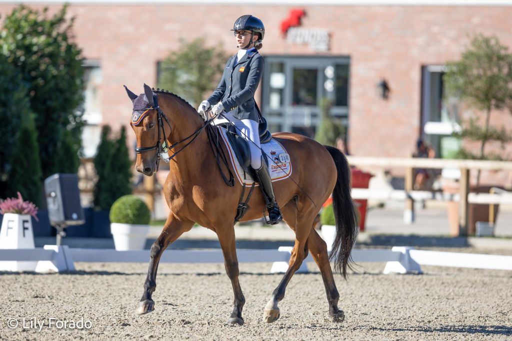La amazona más joven de todo el Campeonato es española y se trata de Carla Onrubia con sus quince años de edad. A lomos de su gran compañero Fuerstenau ha escrito una nueva página en la historia de la Doma Paralímpica española, puesto que ha sido la primera española en clasificarse en la final de las finales: la Kur Freestyle del Campeonato de Europa. Su participación en este europeo ha sido muy notable, puesto que arrancó con un 68.033 % (séptimo puesto en la prueba individual) y en la prueba por equipos anotó un 67.200%. Concluyó su participación bailando al son de las melodías de su KUR con un notable 69.287 % y una séptima posición europea.