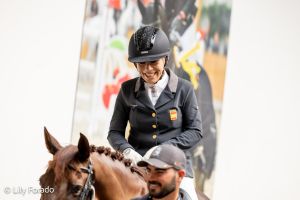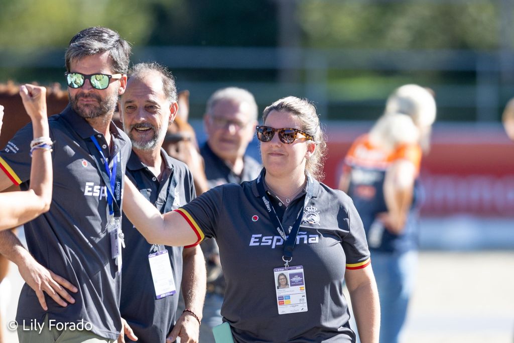 Bajo la batuta de entrenamiento de Pepe Raga y la dirección técnica de Fátima Cao, este año el equipo español ha estado compuesto por María del Carmen López con Bribón de Ymas (Grado III), Carla Onrubia con Fuerstenau (Grado III) y Félix Gómez con Merlín (Grado II)