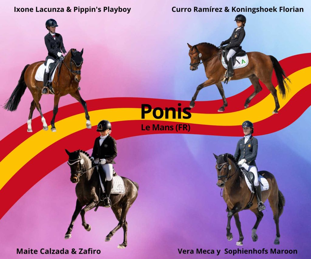 Por último y no menos importante, los jinetes de Ponis, la categoría donde empieza todo a nivel internacional. Con sus dos europeos en su espaldas ( 2021 y 2022), Vera Meca será la que guiará a los tres restantes jinetes. Tanto Ixone, como Curro y Maite han obtenido medias muy consistentes a lo largo de la temporada, de allí su selección final.