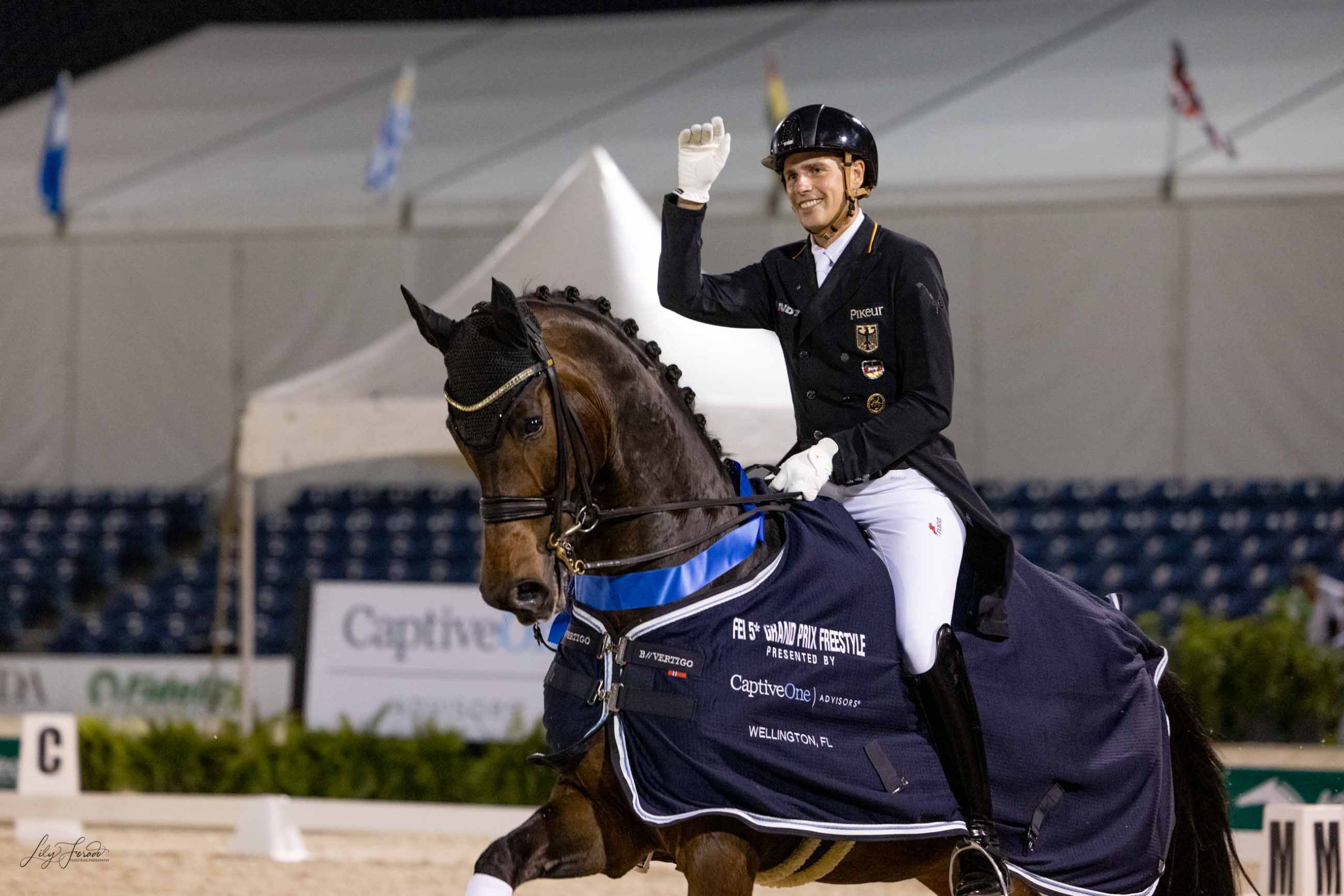 El jinete alemán Frederic Wandres con Bluetooth OLD culmina su temporada americana de la mejor forma posible, con su sexta victoria consecutiva y una nota dorada de 82.310%, siendo el único en superar la famosa barrera del 80%.