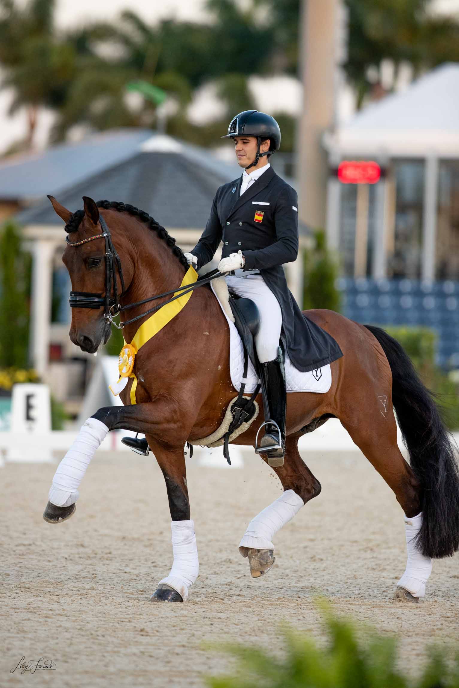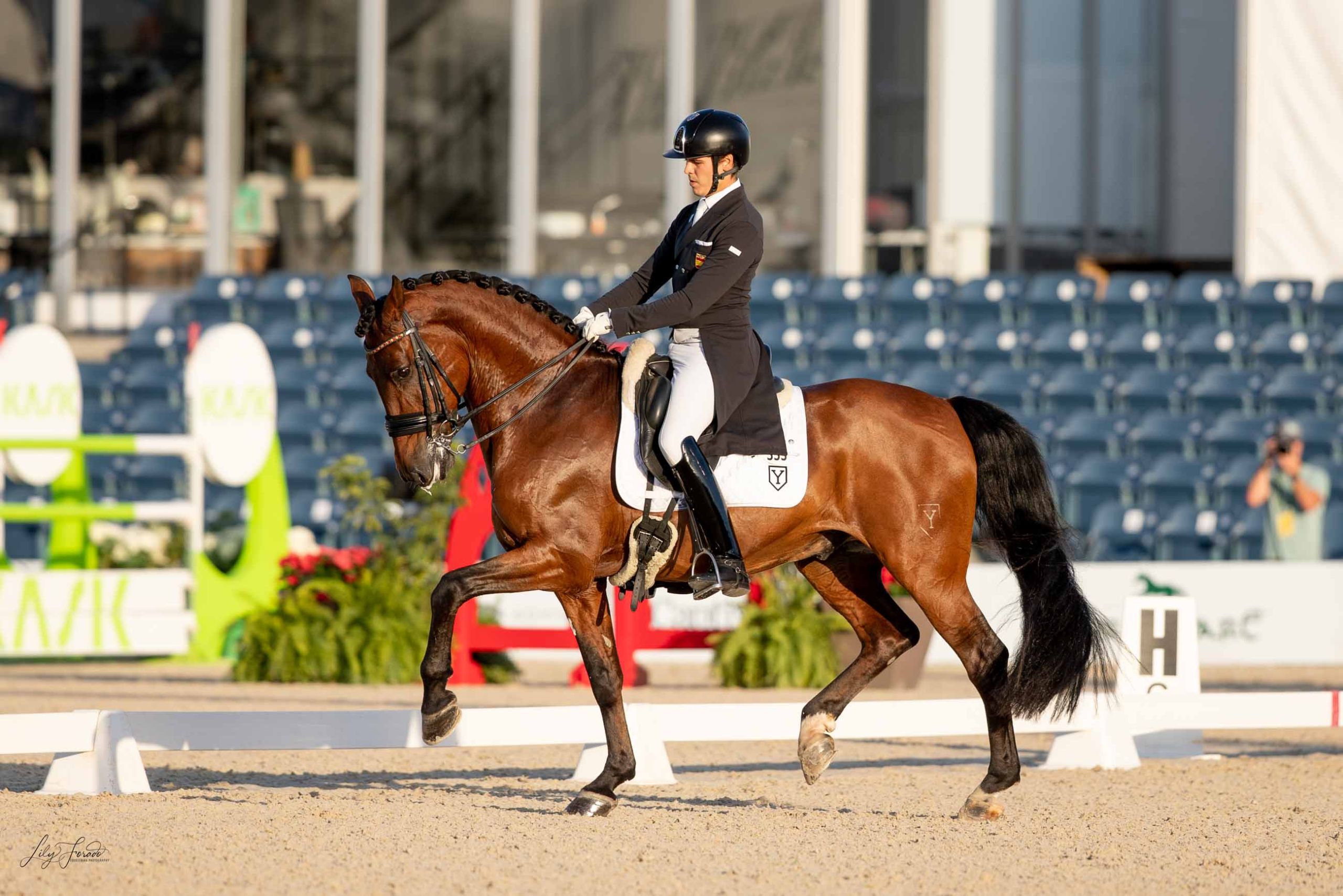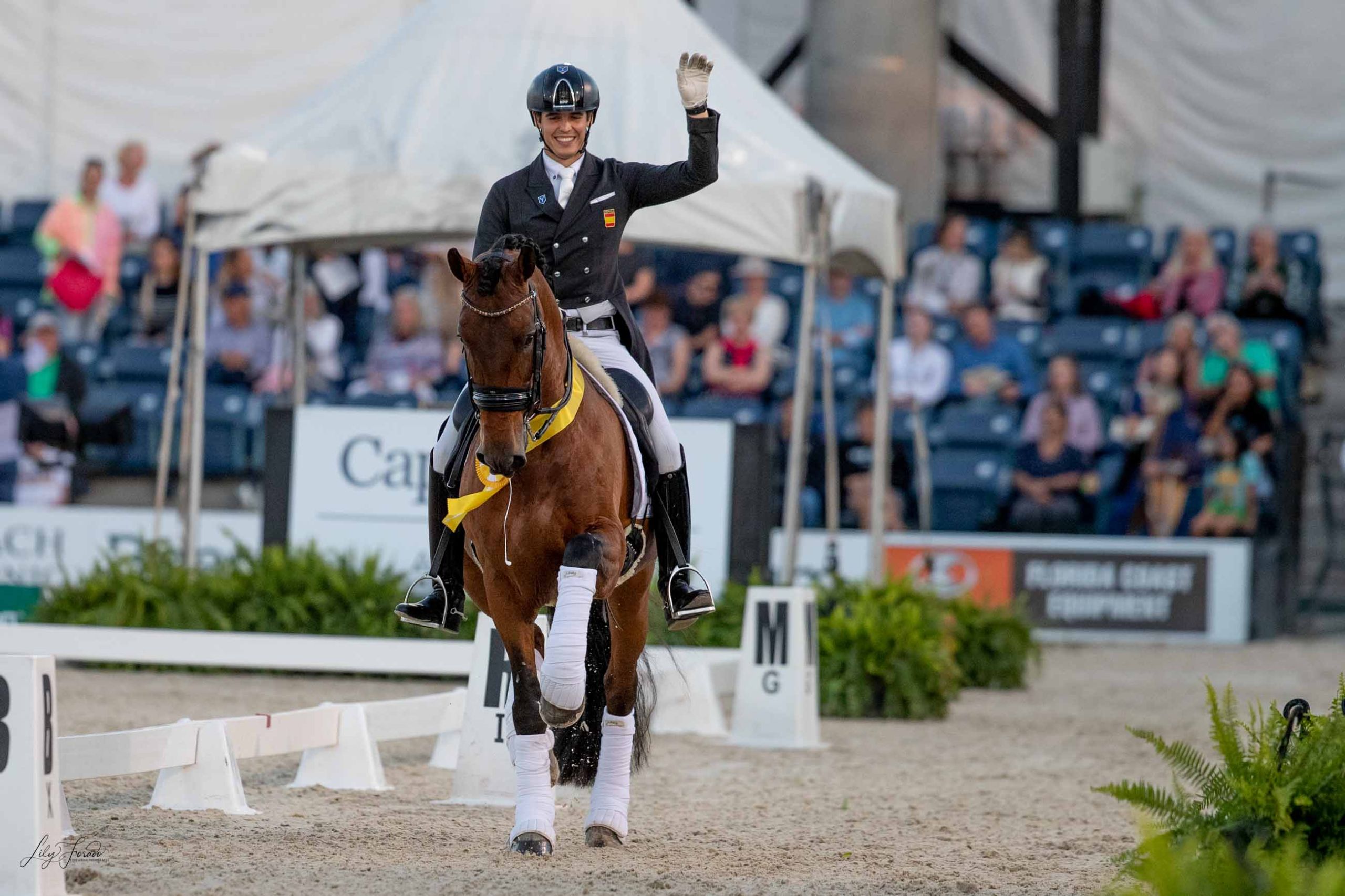 Pablo Gómez, culmina su temporada de la mejor forma posible. EL jinete de Ymas ha realizado seis salidas a pista con el PRE Ulises de Ymas, y cada una de ellas ha sido mejor que la anterior, batiendo récord tras récord. El broche de oro ha llegado esta última semana con su aplastante triunfo en el GP CDI5* y el tercer puesto en el GPS.