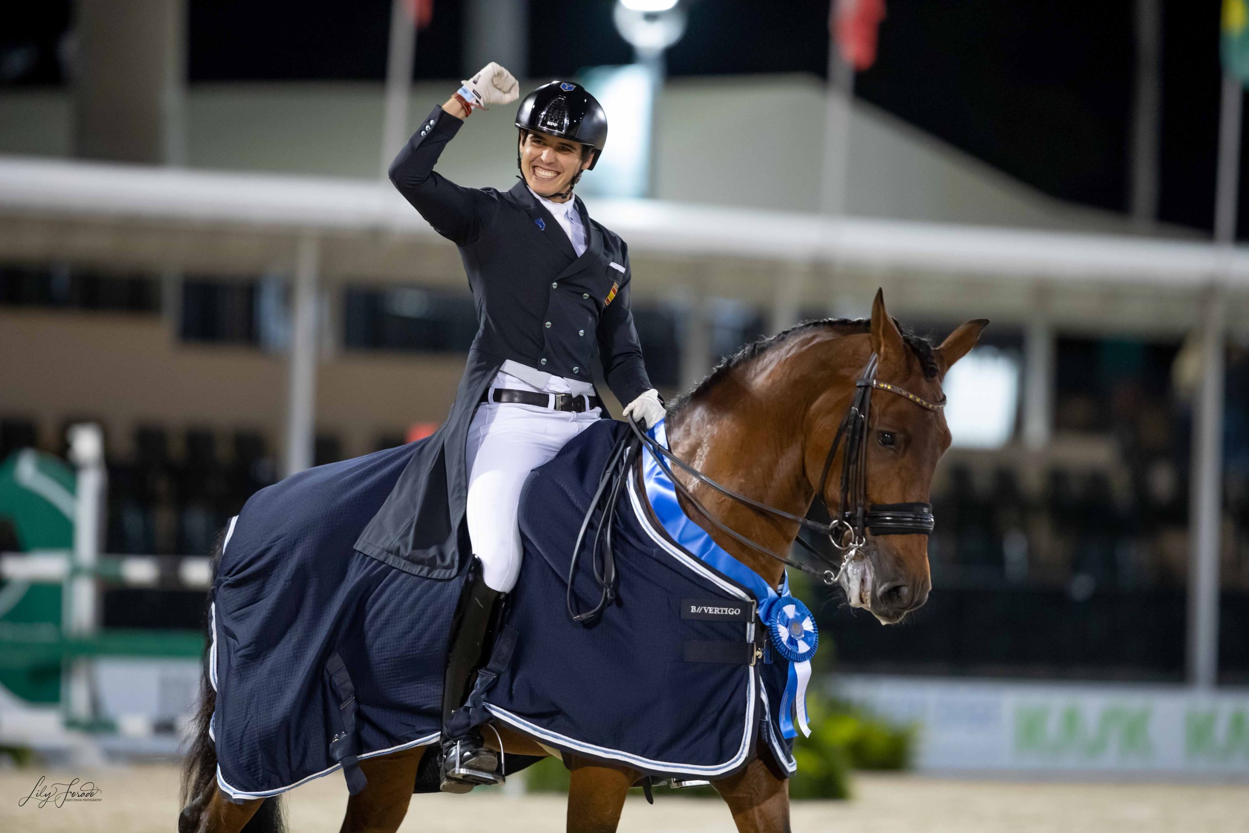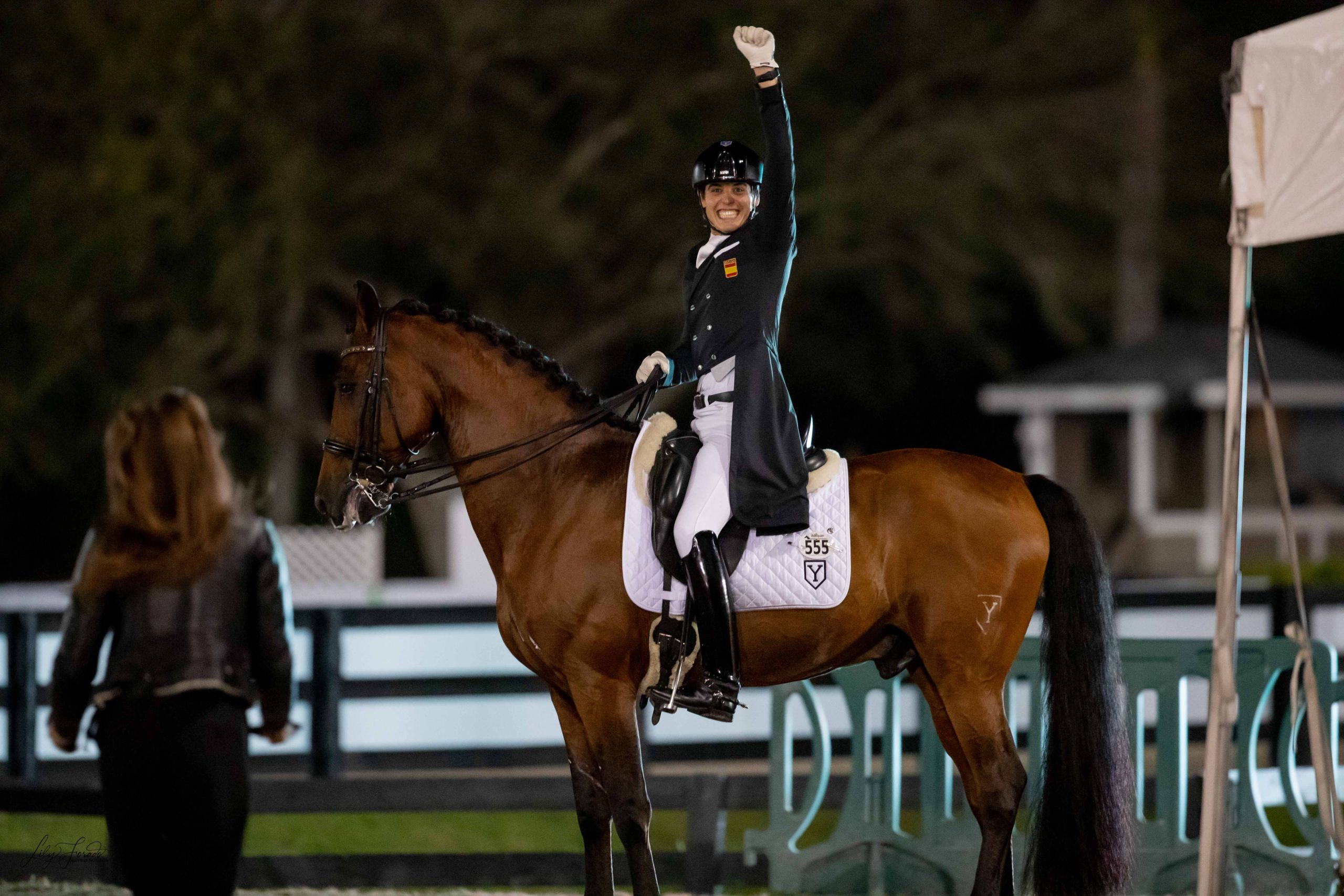 Su primera participación en un CDI5* ha sido estelar; un triplete perfecto, con nuevo récord personal de 71.239% y victoria. Pablo no sólo ha conseguido la victoria, sino que ha escrito una nueva página en la historia de la Doma Clásica Española. Ganar es siempre un gran hito, pero es que vencer fuera de tu país y escuchar el himno español es algo indescriptible.