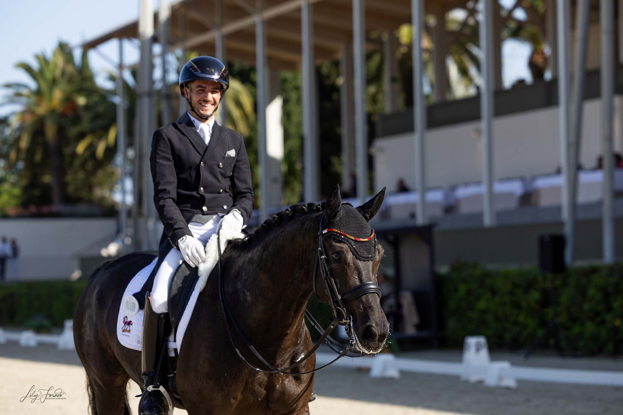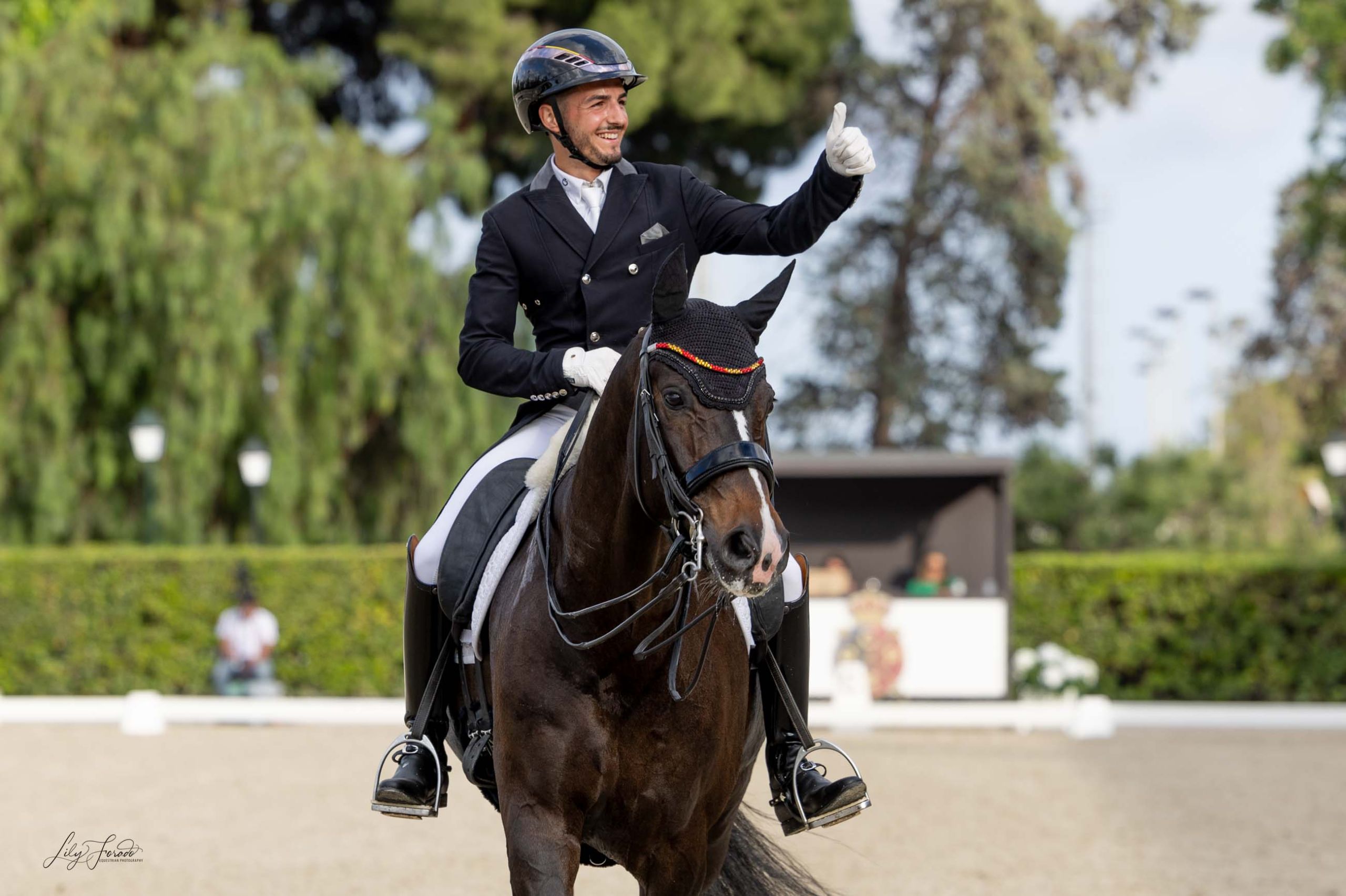 Para Adrián, el 31 de Mayo 2024 será un día que nunca olvidará. El jinete de Málaga se subió en uno de los escalones del podio colgándose así la medalla de bronce con Future Jazz Dance RV. Su historia define perfectamente la perseverancia e inspiración. Su emocionante reacción tras conocer su medalla de bronce en la prueba técnica de U25 fue muy especial.