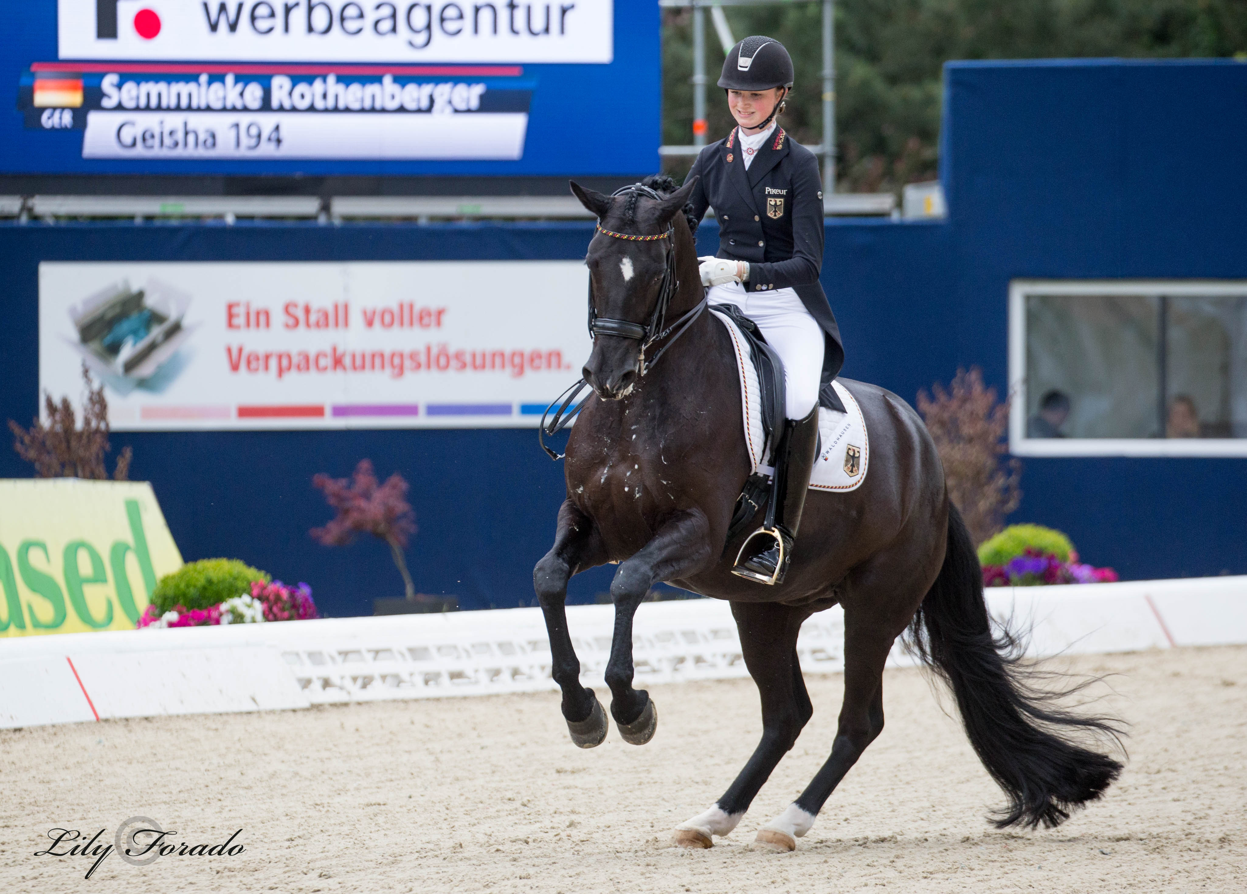 El gran duelo entre la reina y el príncipe de la doma clásica fue finalmente  para Isabell donde se coronó campeona de Europa por tecera vez. Sonke Rothenberger no se puso nada fácil a Isabell. Bajo los acordes de una música muy pausada, melódica compuesta por Cees Slings, Sonke Rothenberger flotaba en la pista. La potencia de los trotrs medios contrastaba con la sutil delicadeza de un passage y piaffe perfecto en un pista de cristal.  La colección de dieces que consiguió fueron  en los ejercicios de máxima reunión, los cambios de pie pero sobre todo los siete dieces en música e interpretación,  ha derivó en la increíble nota de 90.614,  batiendo así su propio record.  La última línea central fue  literalmente un espectáculo. Esa prueba fue la última de Sonke en 2017.