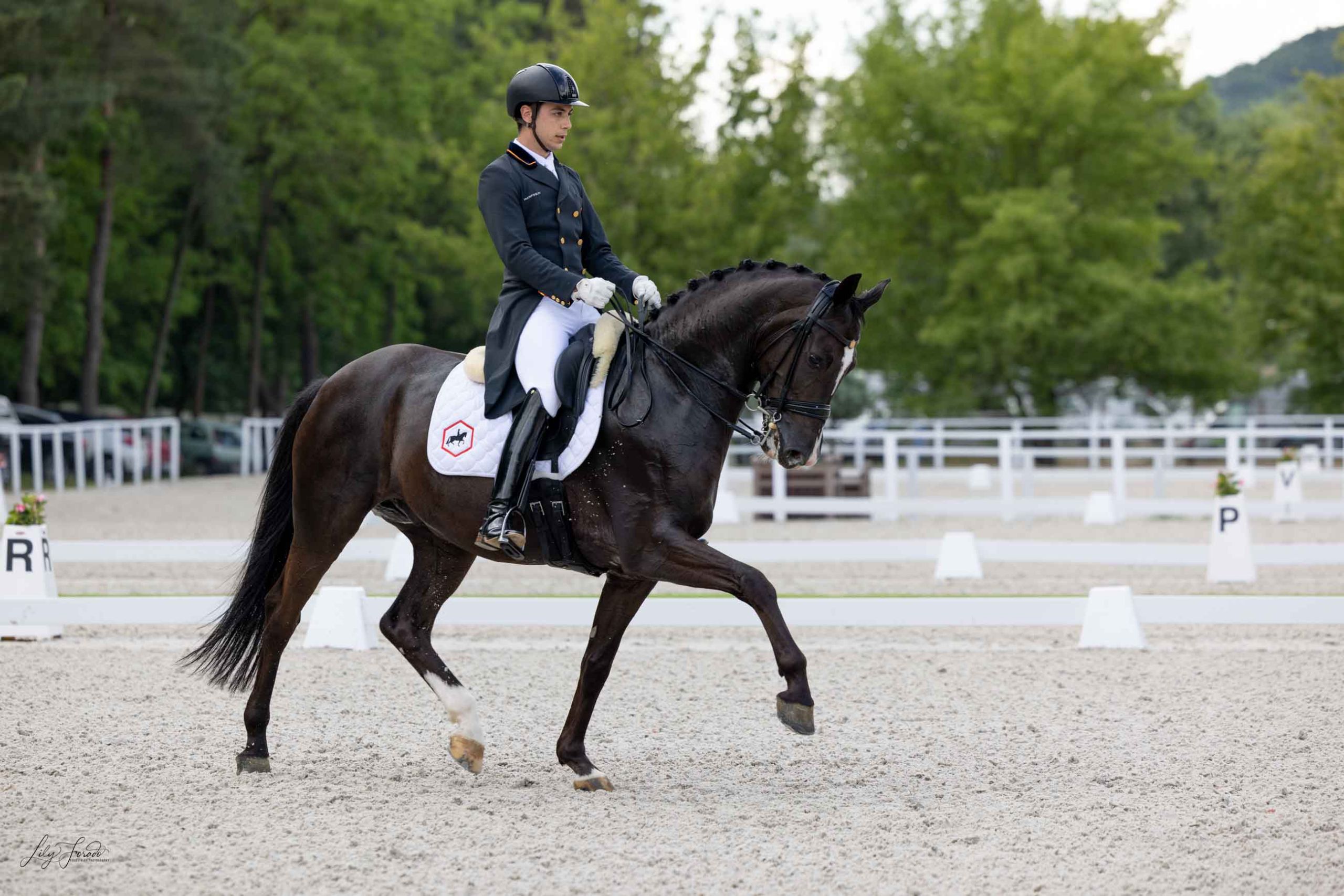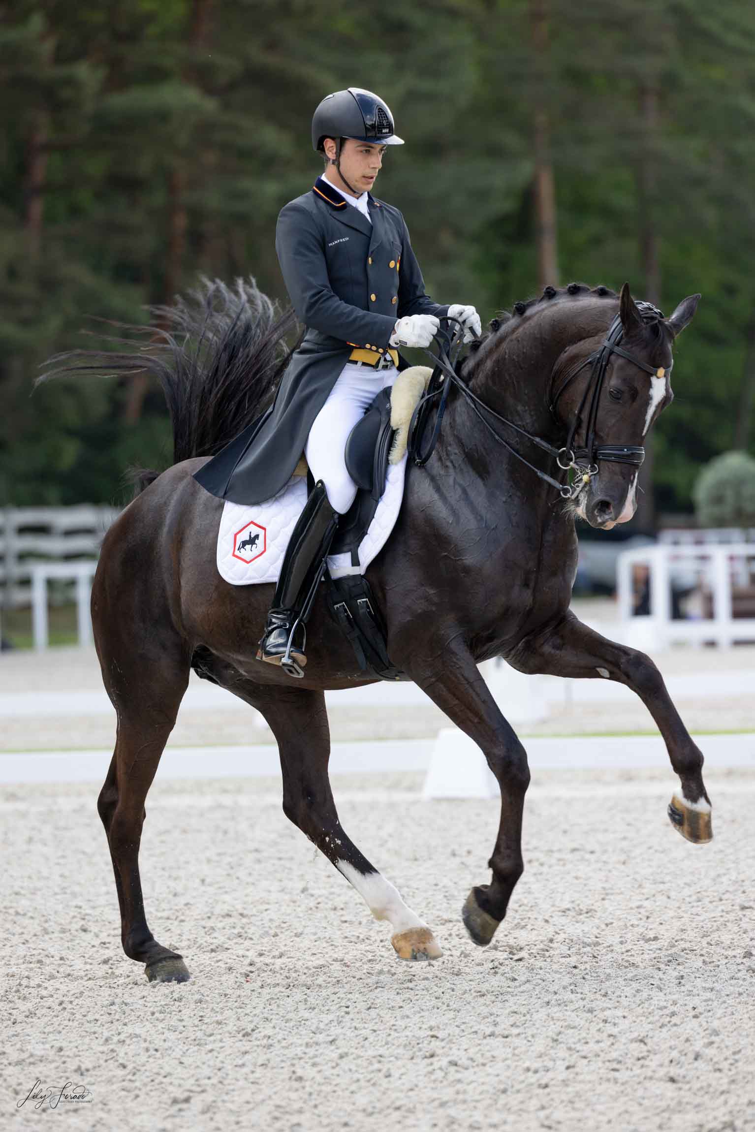 En el galope remontó, pero en las diagonales de cambios de pie hubo ciertas imprecisiones en las batidas. Con una media final de 64,804% ha cerrado el podio. La ganadora de la prueba ha sido Grete Ayache de Estonia junto a Farao Da Raia con un 66,478%