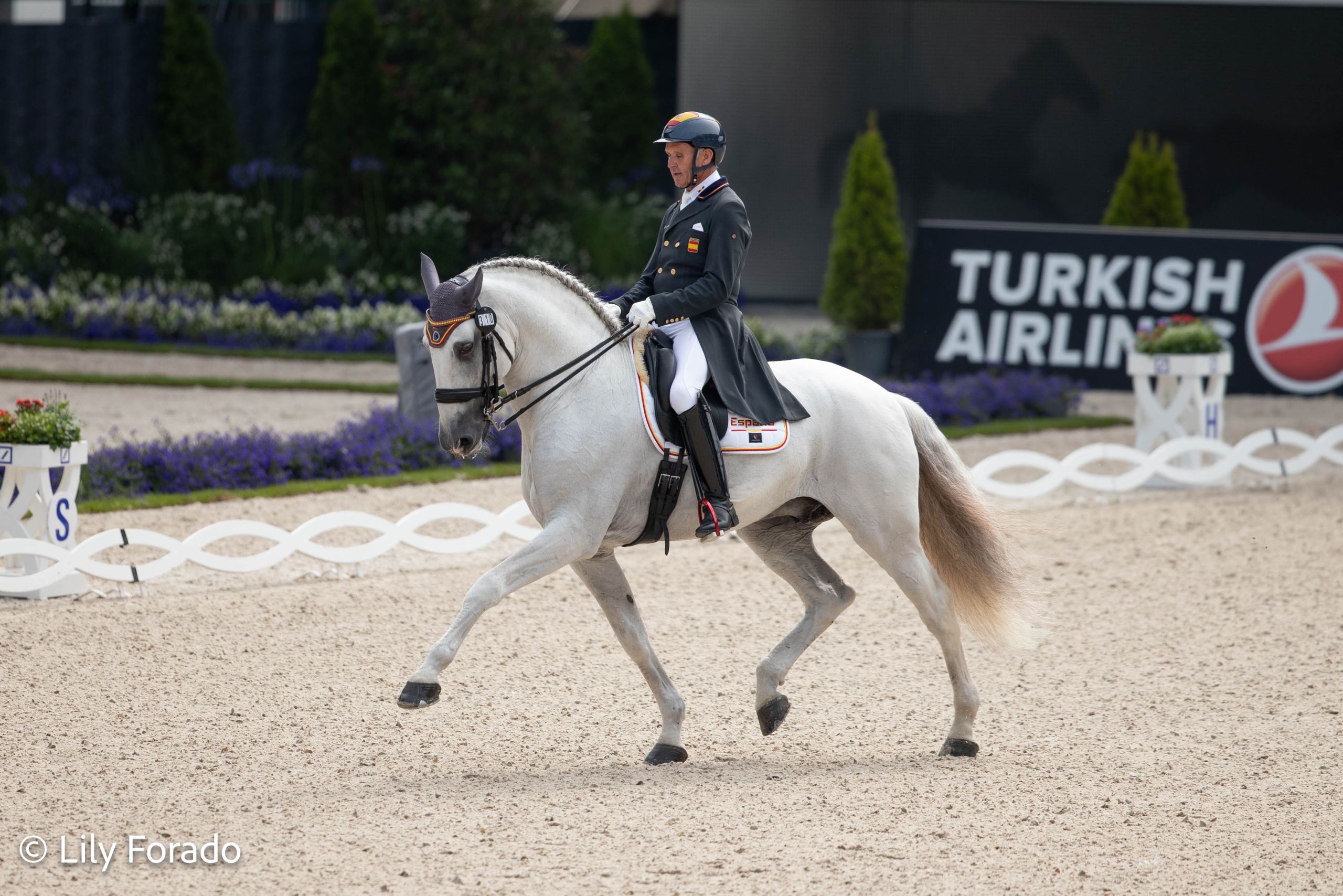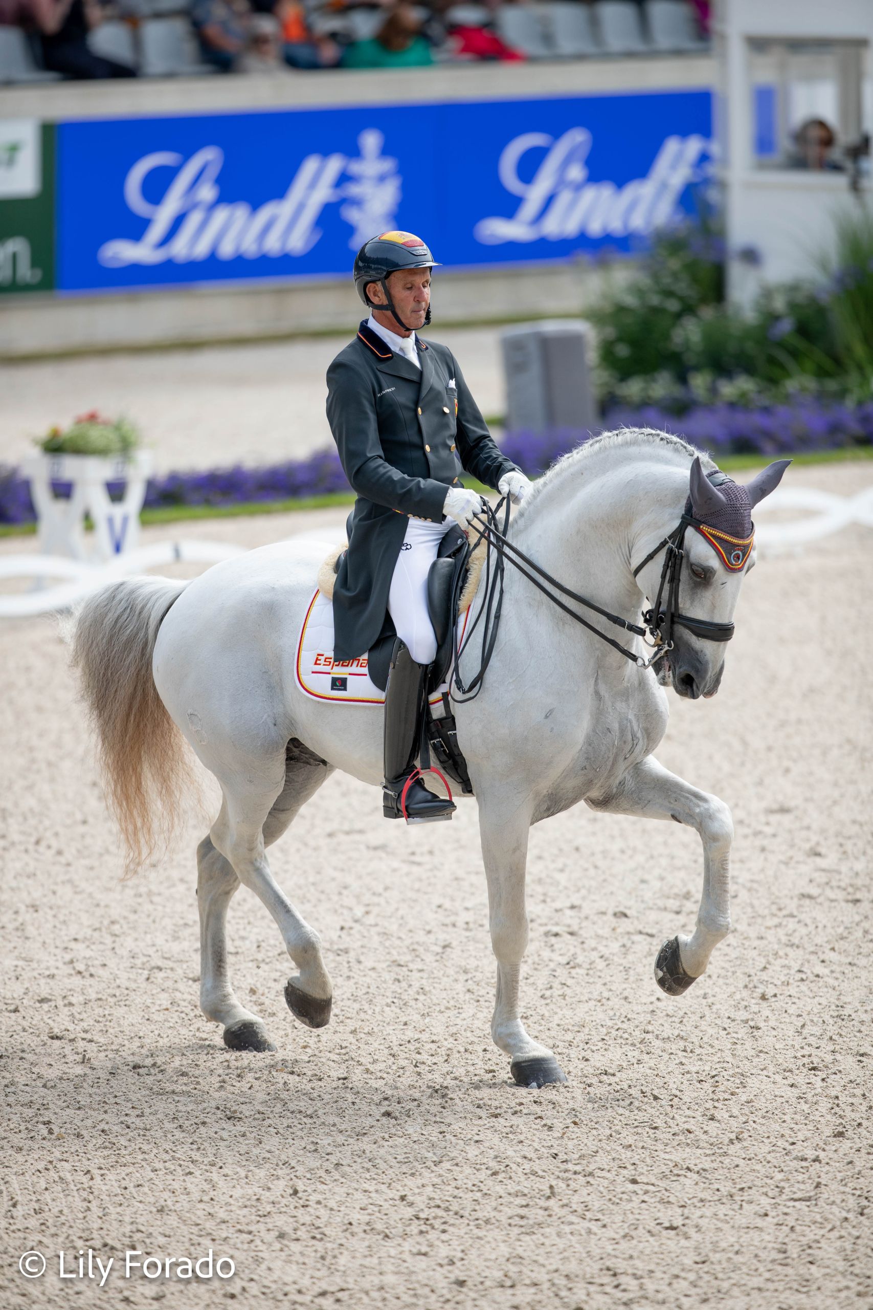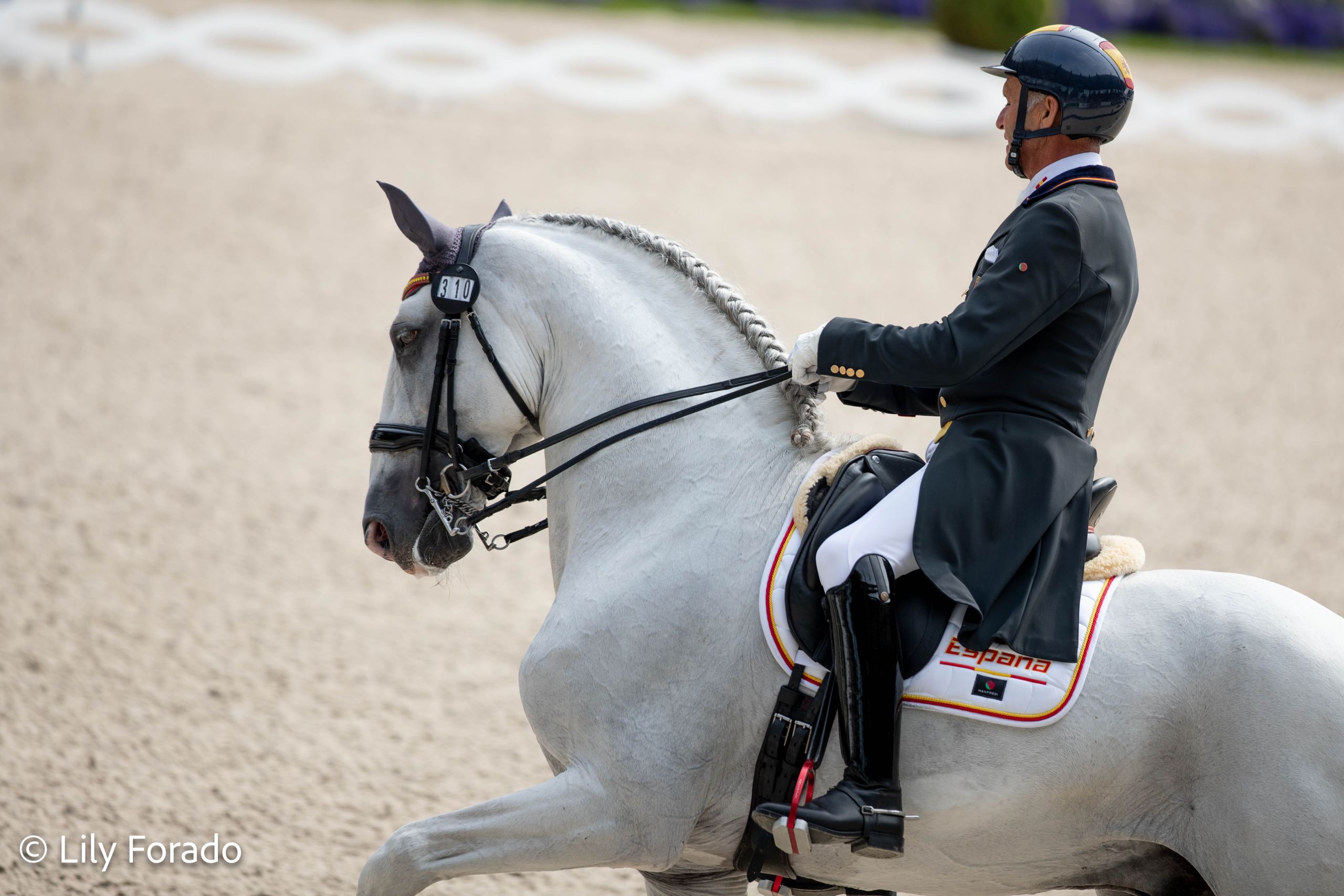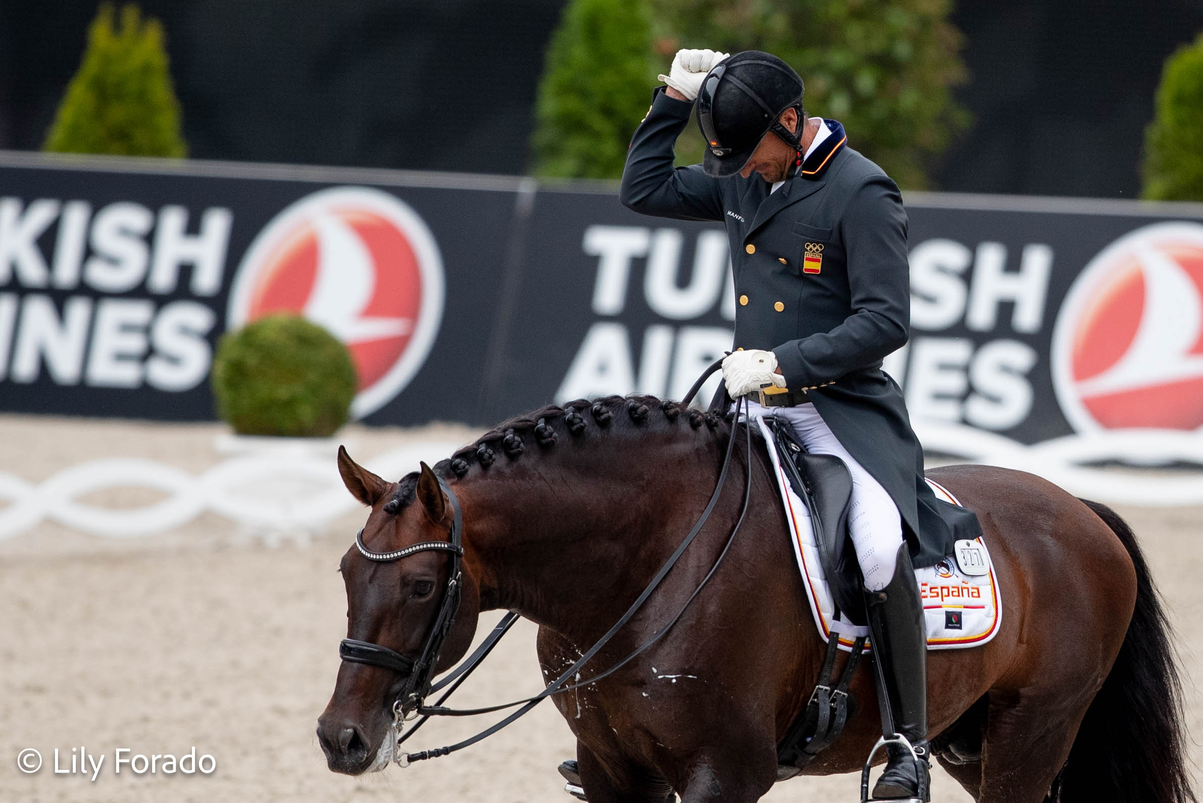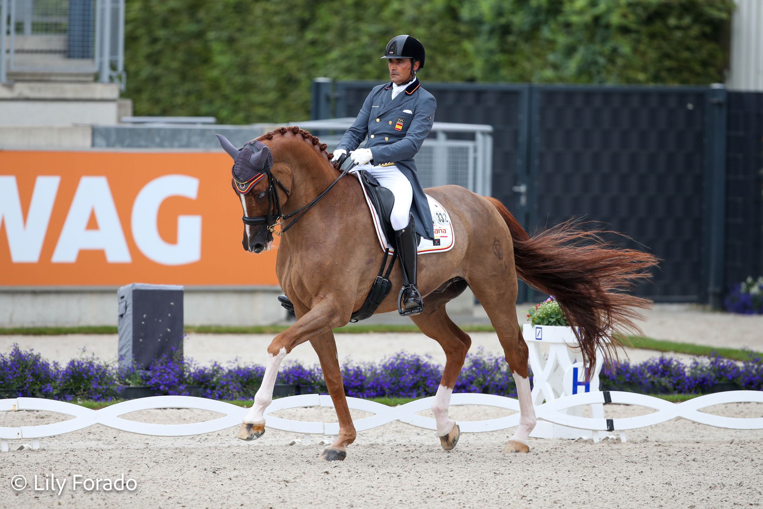 Hoy España ha contado con cuatro jinetes de lo más experimentados posibles. José Antonio García Mena junto a Sorento no ha tenido su mejor día. Pese a la gran monta del jinete olímpico, el caballo no encontraba el ritmo en las batidas de sus posteriores, así como pequeñas imprecisiones en el galope, lo que le ha catapultado a un 69.326%.