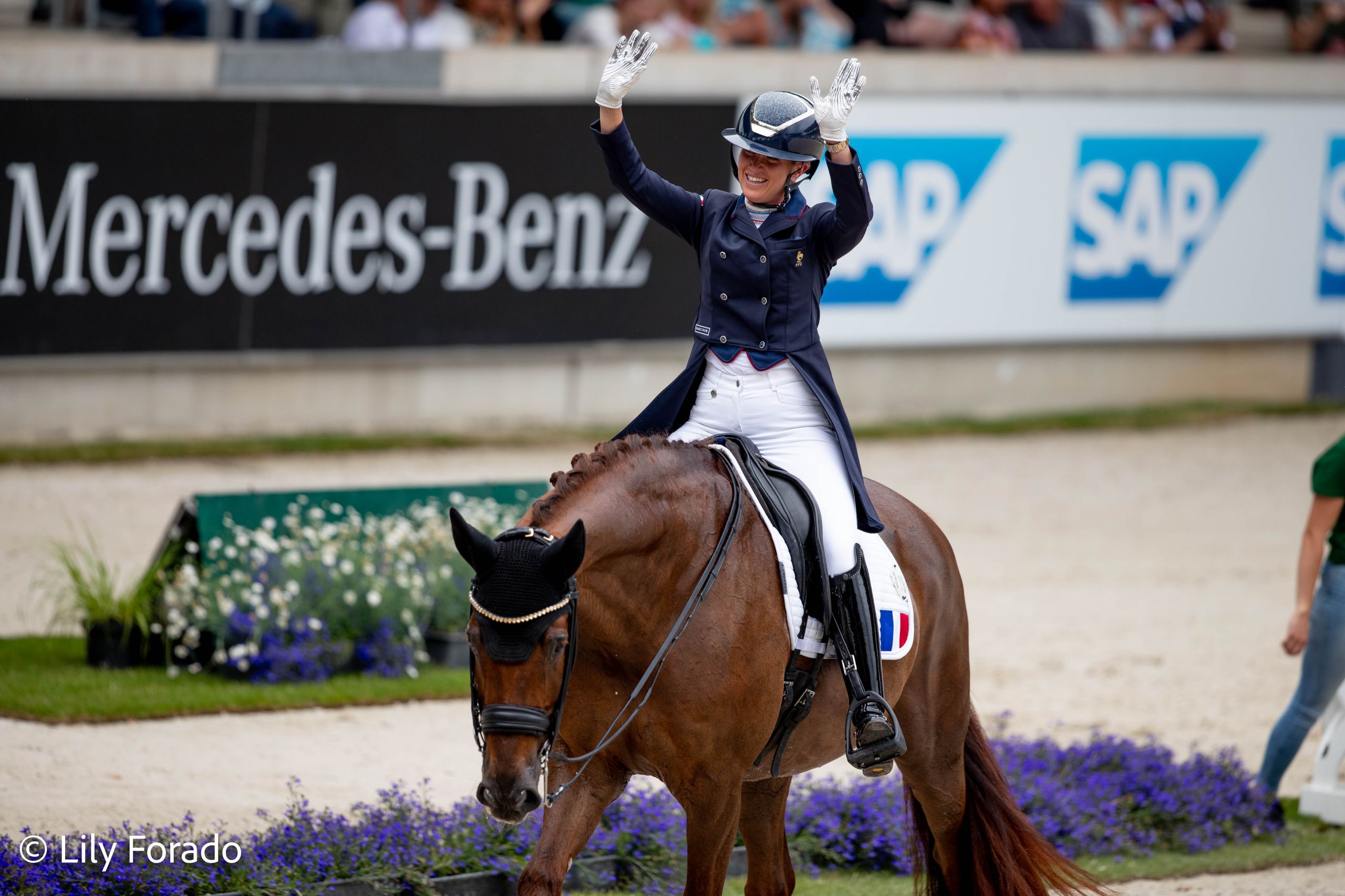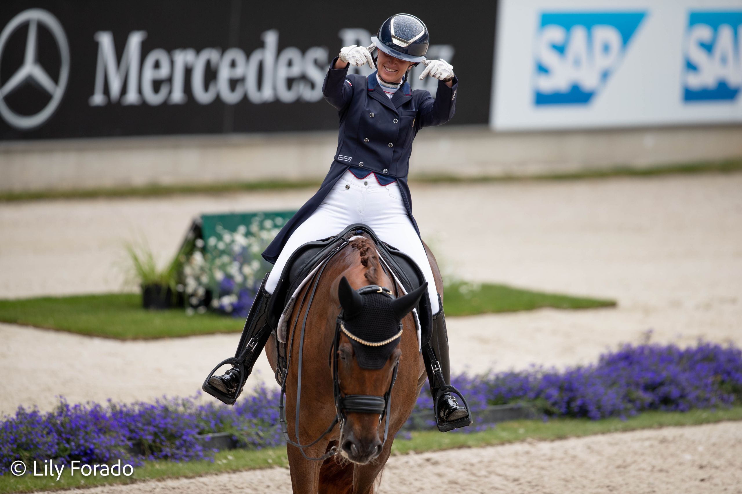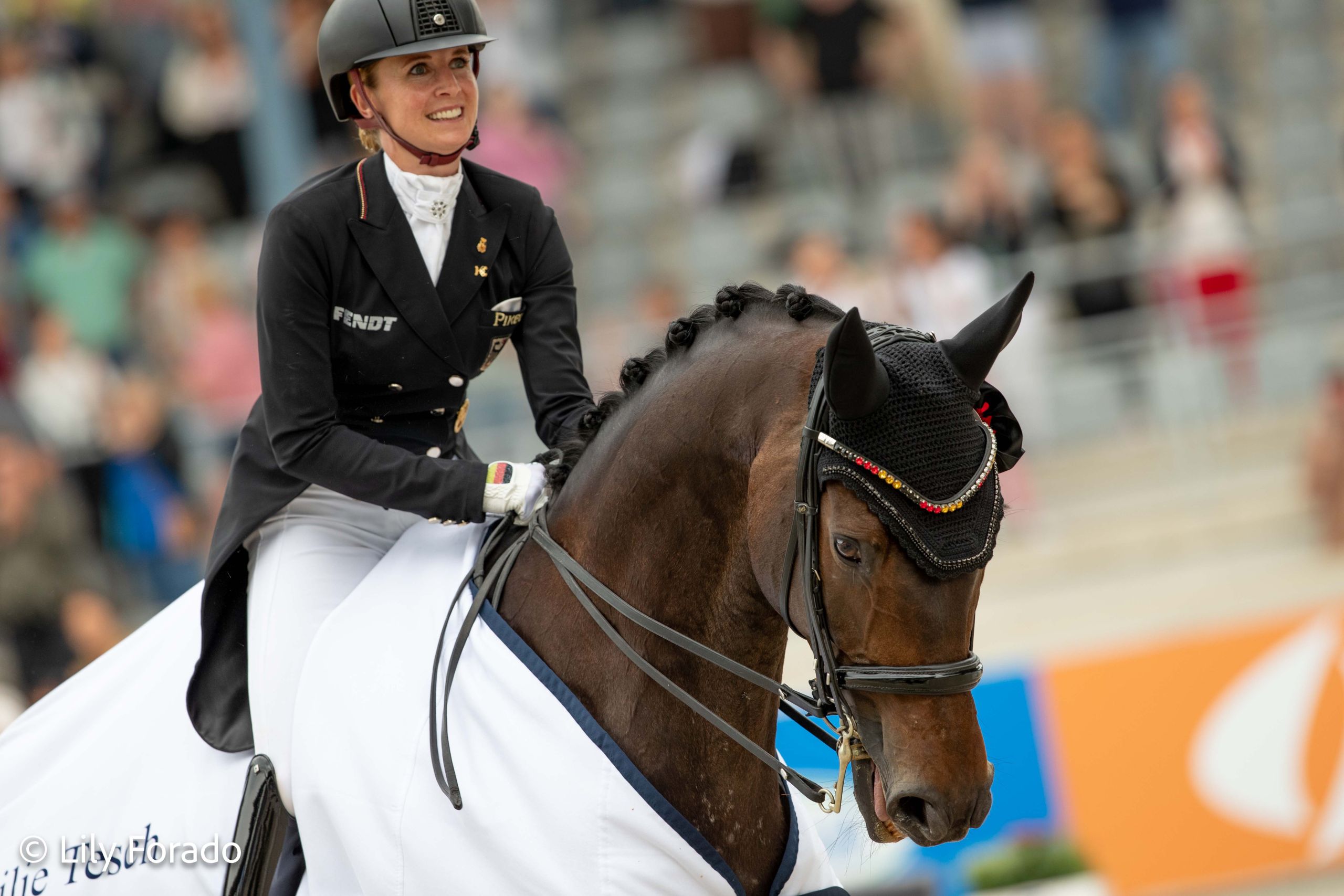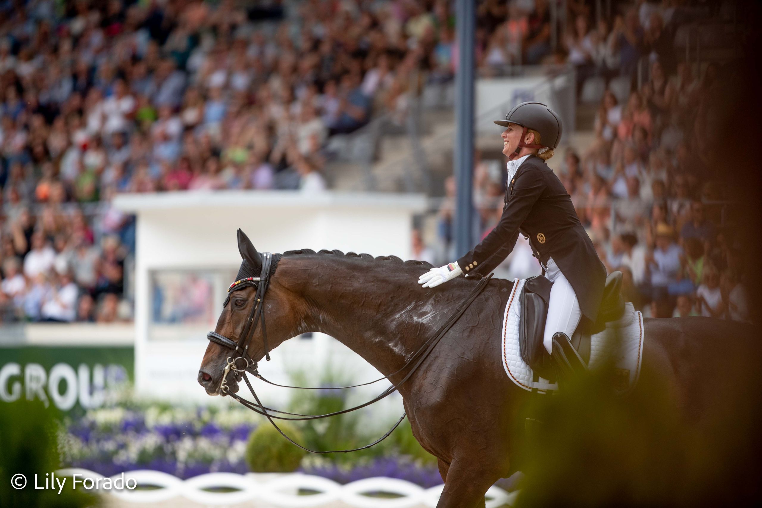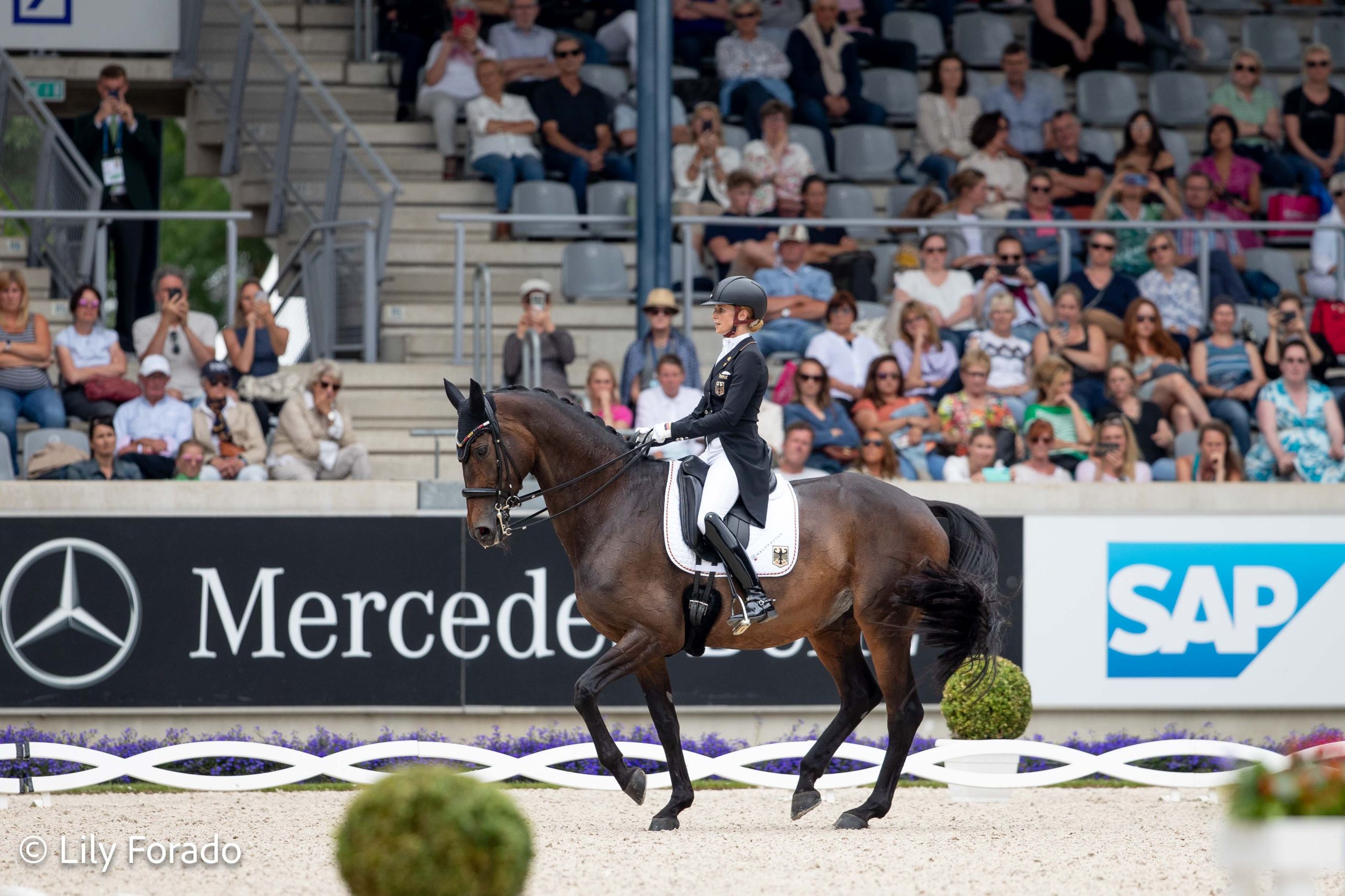 Jessica von Bredow-Werndl está on fire como dicen los americanos. La estrella número uno mundial mantiene su tónica dorada y deja claro que siempre va a por todas. A lomos de TSF Dalera BB ha demostrado que su sistema de entrenamiento tiene sus frutos. Su acompasado ritmo, cadencia y sobre todo ejecución de los ejercicios de máxima reunión  le ha permitido anotar punto tras otro, dando así una lección a todos los presentes en Aachen. Su 82.304% ha sido su nota dorada.