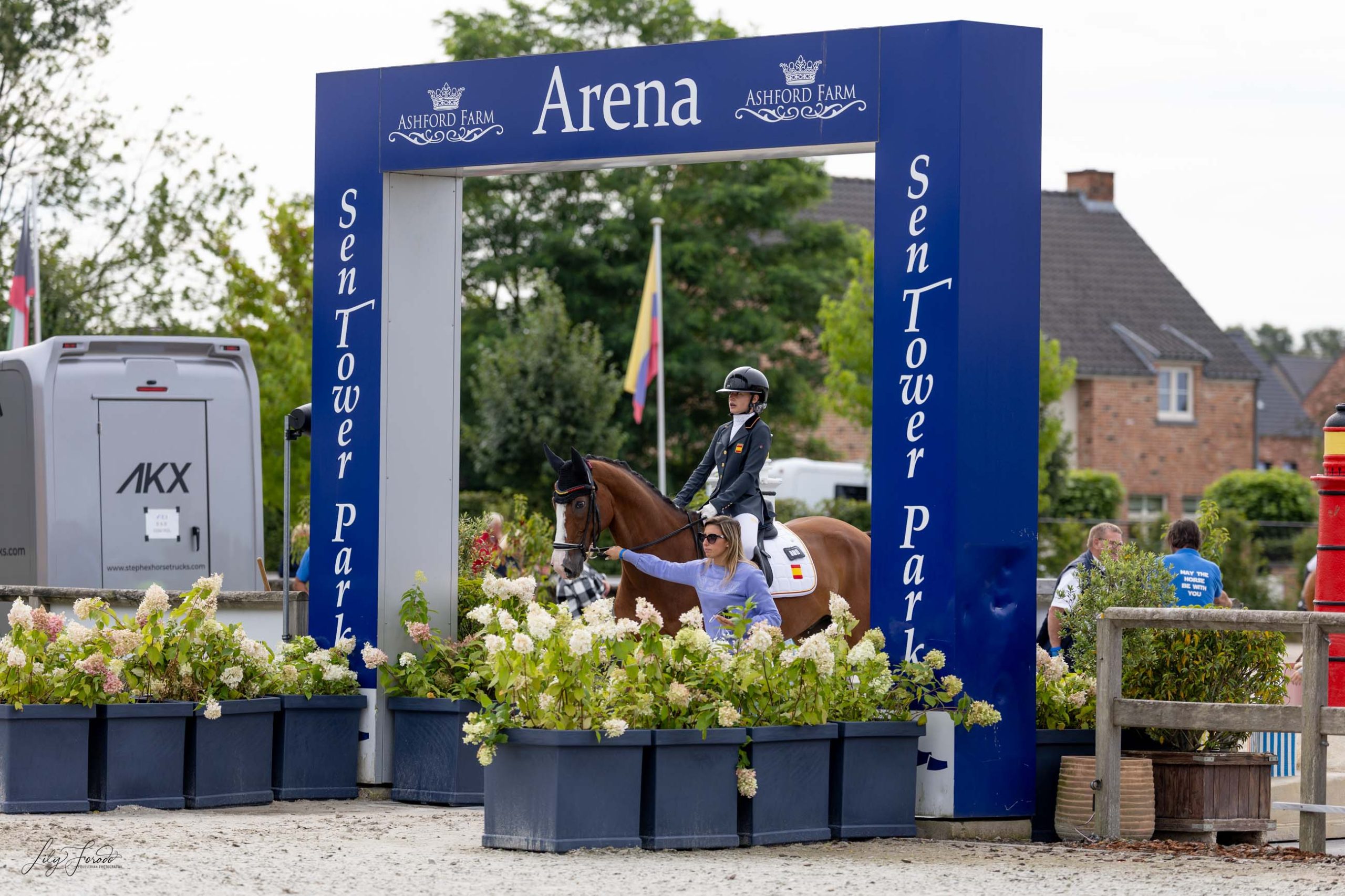 Los jinetes mas pequeños no dejan nunca de soprender. Su técnica y monta es algo digno de admirar.  En la segunda parte de la Preliminar B, las dos amazonas españolas defendieron con gran honor. La campeona de España 2023 de Alevines, Triana Vargas con Don Corleone lleva una temporada de inicio en Infantiles de ensueño y hoy se ha visto reflejado. La pupila de Valvanera Palacios ha presentado una prueba de esas que hipnotizan. Tranco a tranco fue sumando punto tras punto, destacando las transiciones ascendentes como descendentes con mucha precisión . Tras su saludo final, la amazona se enfundó en un gran abrazo con su caballo y se mostró muy feliz con una sonrisas de oreja a oreja. Su nota final ha sido de 71.441%.