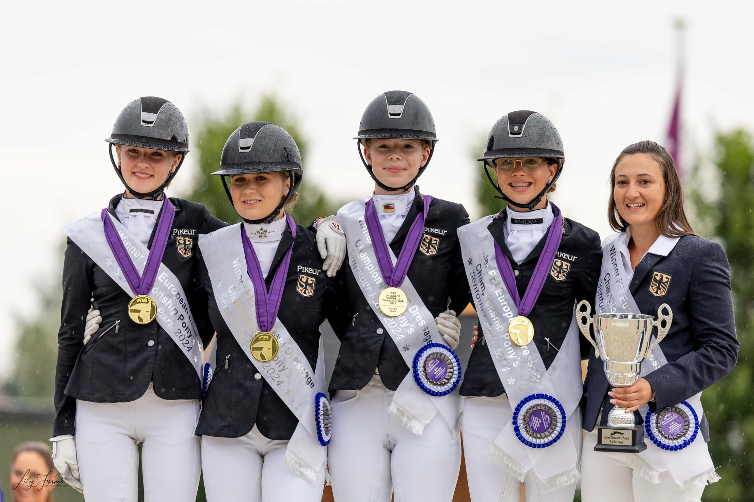 Ya en la primera vuelta, las alemanas  Marie Sohler y Alix Von Borries abrieron camino, pero es que Maria Teresa Pohl con Lennox US lo engrandeció  con su sólido 73.636% y dejó claro que los alemanas querían mantener su idilio dorado de la temporada pasada. Ya en el último bloque y última rotación de jinetes, las alemanas ya eran ganadores. De hecho, la campeona del año pasado Rose Oatley a lomos de Sommernacht 7 sentenció. Con un apabullante 76.727% se impuso en la prueba. Con un acumulado de 223.696%, de nuevo las alemanas se suben en lo más alto del podio y por ende se proclaman campeonas de Europa de 2024. La medalla de plata ha recaído para Dinamarca con un acumulado final de 216.122 y el tercer escalón ha sido para las holandesas con un nota de bronce de 214.364.